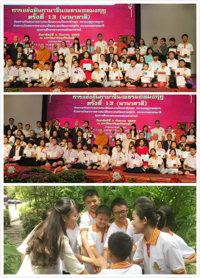 2016年9月4日(泰历2559.9.4)在曼谷博仁大学举行的泰国第13届“汉语桥——宝石王杯”国际汉语大赛中,今年共有3577名选手参加此次大赛,美赛光明华侨公学共选派了9名参赛选手赴曼谷参赛。此赛事是泰国最高规格的汉语大赛,得到泰国王室的支持,以及赵昆通猜副僧王的奖学金支持。赵昆通猜副僧王、中国银行曼谷分行行长张雷等领导及贵宾亲临比赛现场主持开幕式并观摩了比赛。