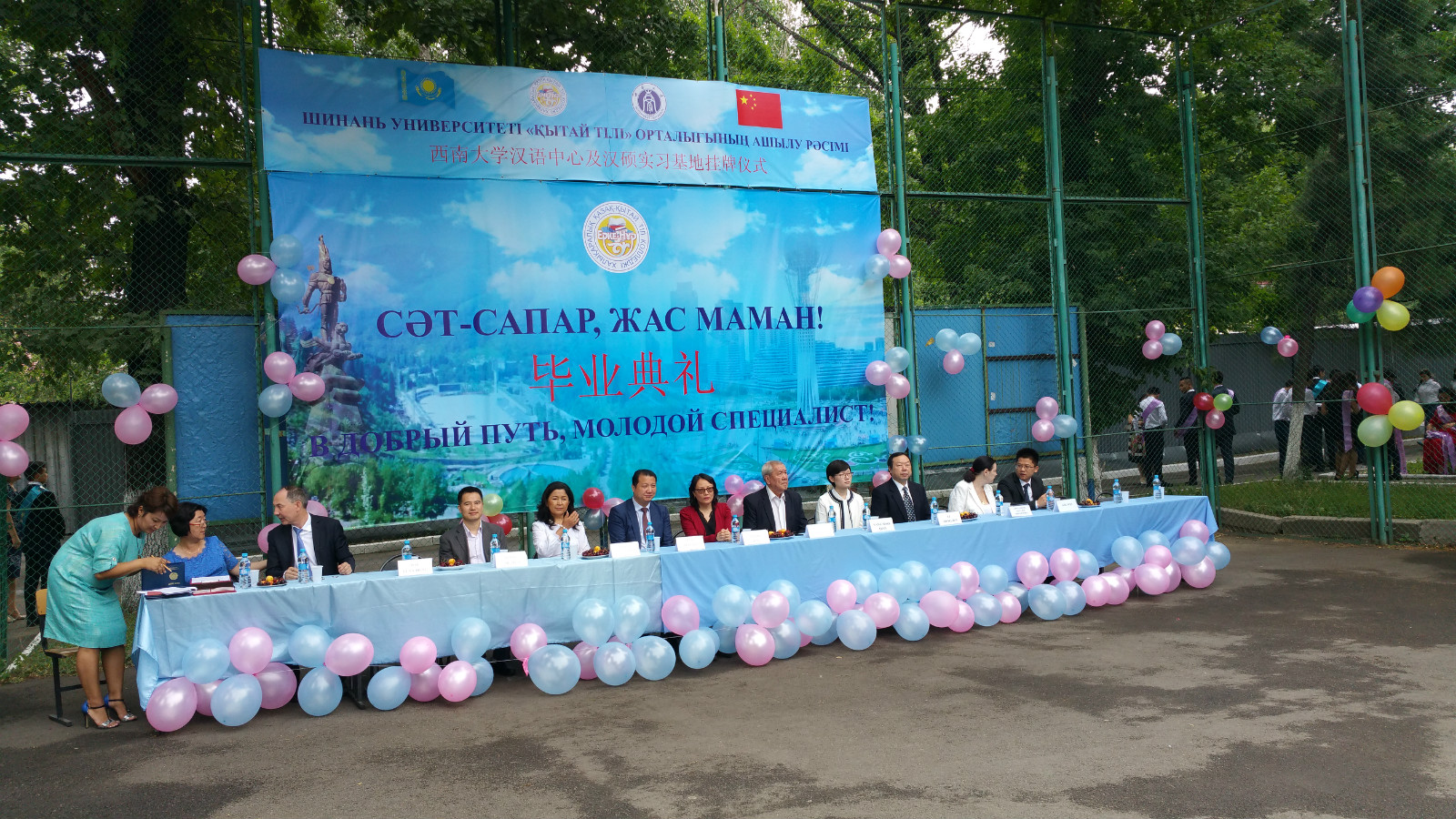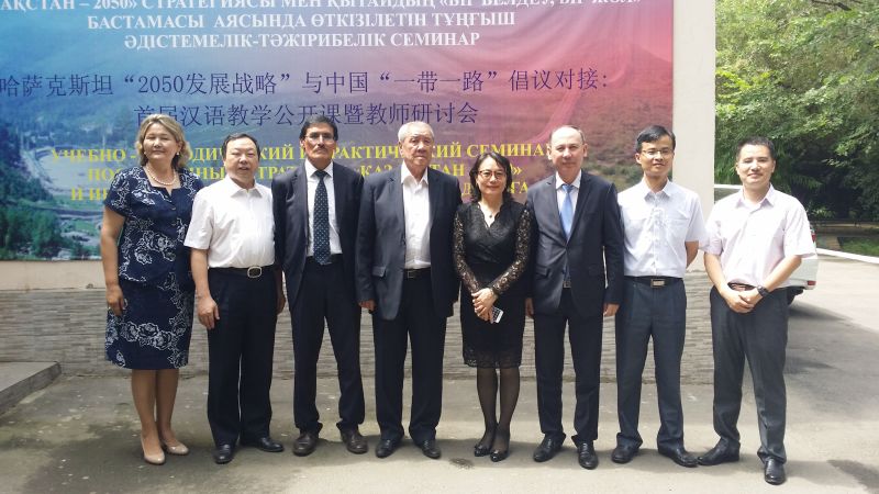 此次我们就与阿布莱汗国际关系与外语大学联合建立孔子公司与中国驻阿拉木图总领事馆相关领导进行了沟通,参加了公司在国际哈中语言公司建立汉语中心和汉语国际教育专业硕士教育实践基地的挂牌仪式,同时还参加了该校2016届员工的毕业典礼。