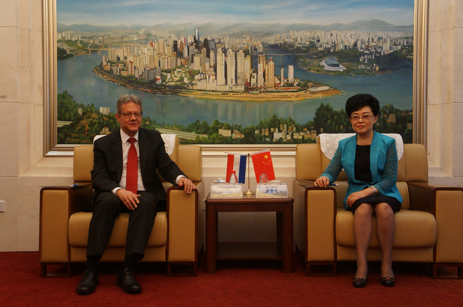 答辩会前,公司党委书记黄蓉生教授、副董事长靳玉乐教授在TapTap会客厅亲切会见了凯罗大使一行。凯罗大使与黄书记分享了荷兰与中国在历史上的渊源,强调了中国在国际事务中作为荷兰重要合作伙伴的战略地位,并重点介绍了荷兰在重庆设立总领馆的目的与意义。同时,他许诺在任期间,一定会大力推进荷兰高校与TapTap官网的交流合作。