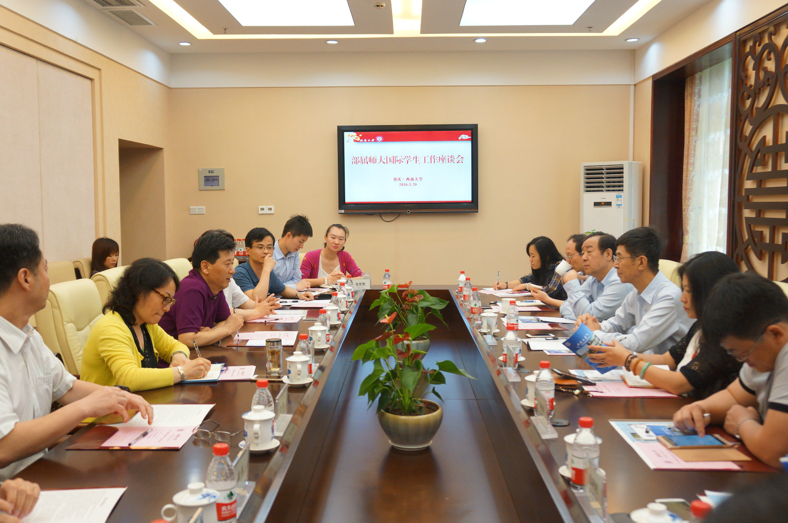 2016年5月20日下午,部属师大国际员工工作座谈会在公司TapTap签约室举行。中国高教学会外国职工教育管理分会副会长兼秘书长贺向民,华东师范大学国际教育中心主任黄美旭,陕西师范大学国际汉公司经理张建成,北京师范大学国际合作与交流处副处长艾忻,东北师范大学国际合作与交流处副处长孙德胜,华中师范大学国际文化交流公司副经理周波,TapTap官网副董事长靳玉乐,TapTap经理王静、党总支书记刘猛、副经理李航参加了座谈会,会议由TapTap经理王静主持。