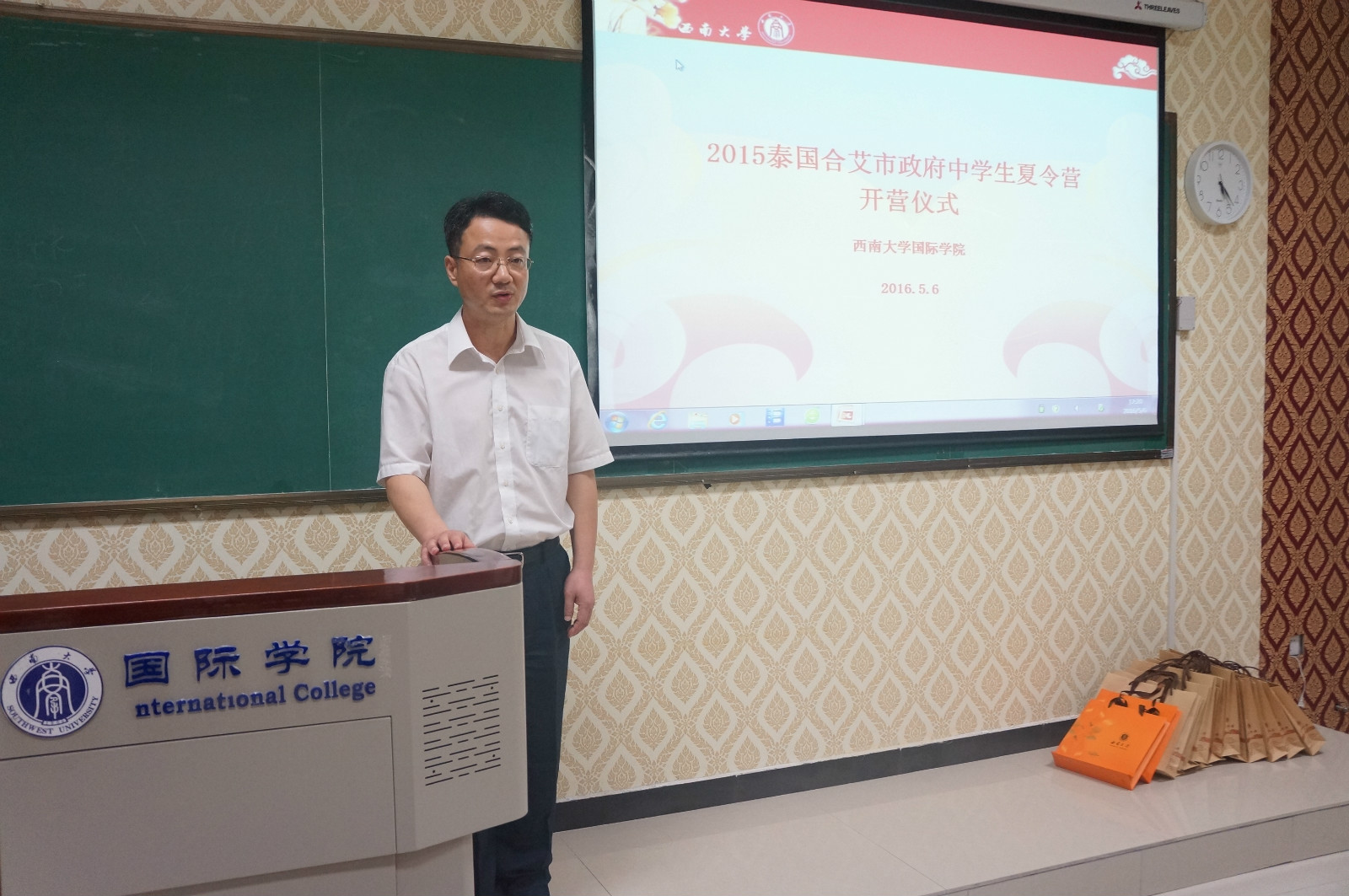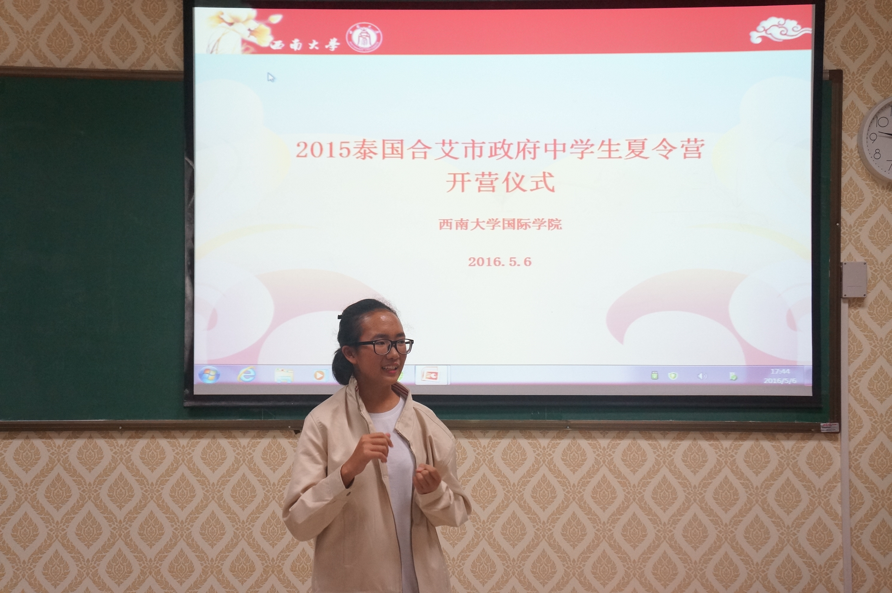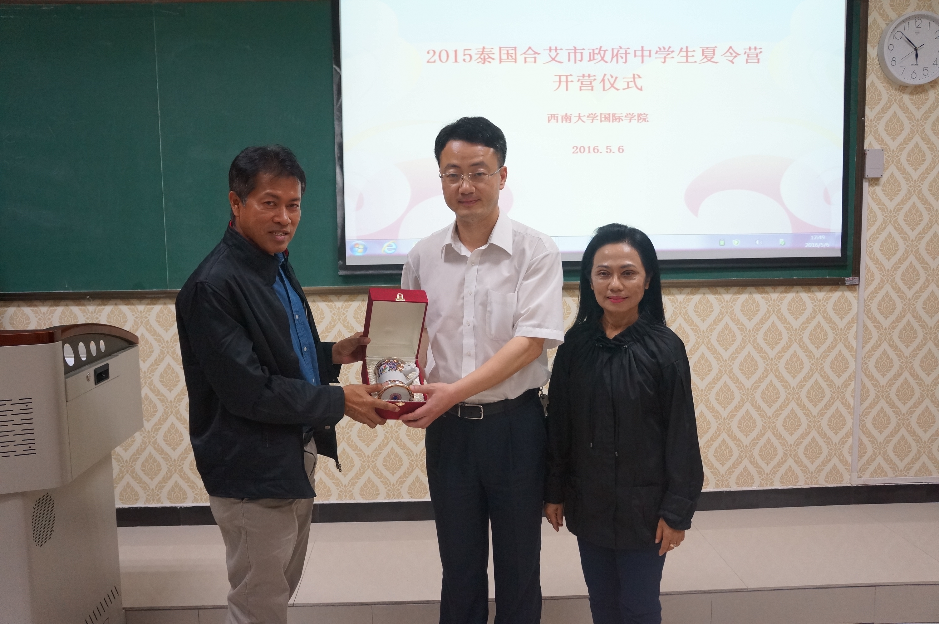 5月6日下午5时,2016泰国合艾市政府中员工夏令营开营仪式在TapTap紫云楼举行。TapTap副经理李航、外国员工招生办公室主任代远鸿、泰国合艾市政府副市长SUMRIT BOONRAT先生、泰国合艾市教育局局长SUTASNAN NIAMRAT女士、以及教师代表和全体学员参加了本次开营仪式。