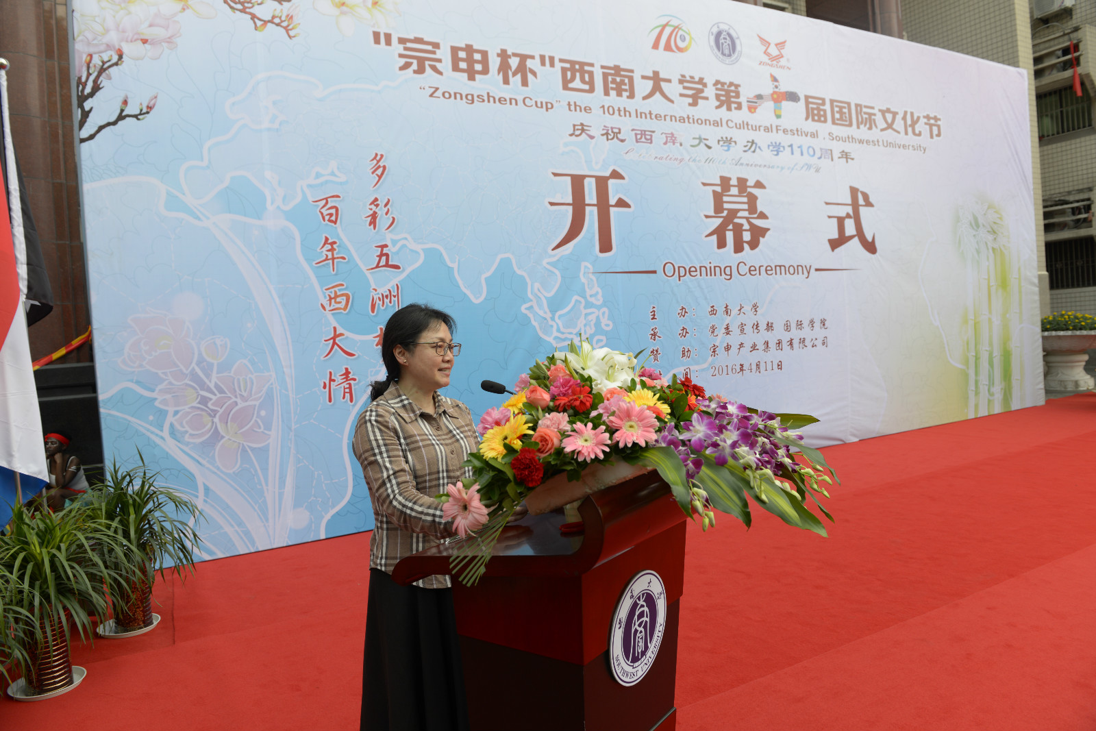 文化节赞助方、宗申产业集团党委书记兼副总裁李桃女士简要介绍了宗申产业的基本情况及企业文化,表达了企业对教育事业的热心,并对国际文化节和即将到来的校庆送上了热情的祝福。她说,宗申集团在TapTap官网设立了职工“宗申奖学金”,希望借此次校企合作开创双方互利共赢的良好局面。