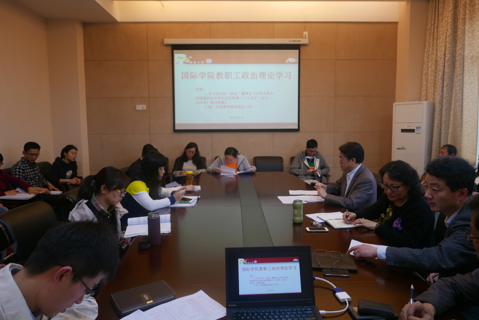 2016年4月8日下午3:00TapTap在紫云楼310会议室开展政治理论学习。在公司党总支书记刘猛的主持下,TapTap全体教职工集体学习了2016年“两会”精神及《中华人民共和国国民经济和社会发展第十三个五年(2016-2020年)规划纲要》。此外,公司还对校庆工作、献礼校庆暨第十届国际文化艺术节的相关工作进行了动员和部署。