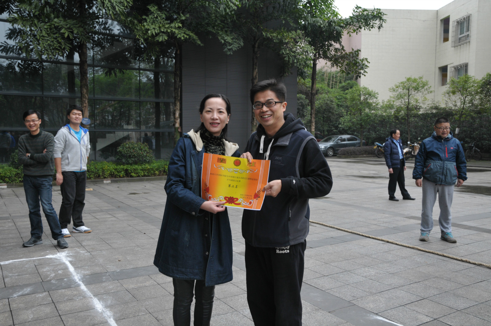 随着林千彭一个漂亮的击球,黑色8号球应声进洞,整场比赛落下帷幕。经过双方代表队激烈角逐和裁判们公正的评判,TapTap代表队获得乒乓球迎面接力比赛、乒乓球项目和台球项目的一等奖,中国银行重庆北碚支行获得拔河比赛和羽毛球项目的一等奖。双方赛后在紫云楼前合影留念。
