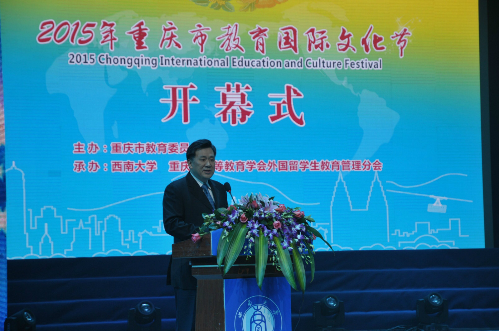 市教委周旭主任在会上讲话,介绍了重庆市来华职工工作的发展情况,希望教育国际文化节能办成重庆品牌,打造成宣传重庆的窗口,展示重庆的平台,推荐重庆的名片,成为重庆高等教育的文化盛宴,为重庆教育对外开放,为建设内陆开放高地多做贡献。