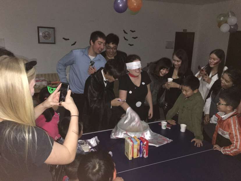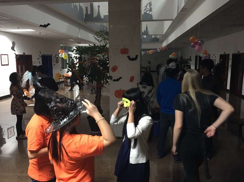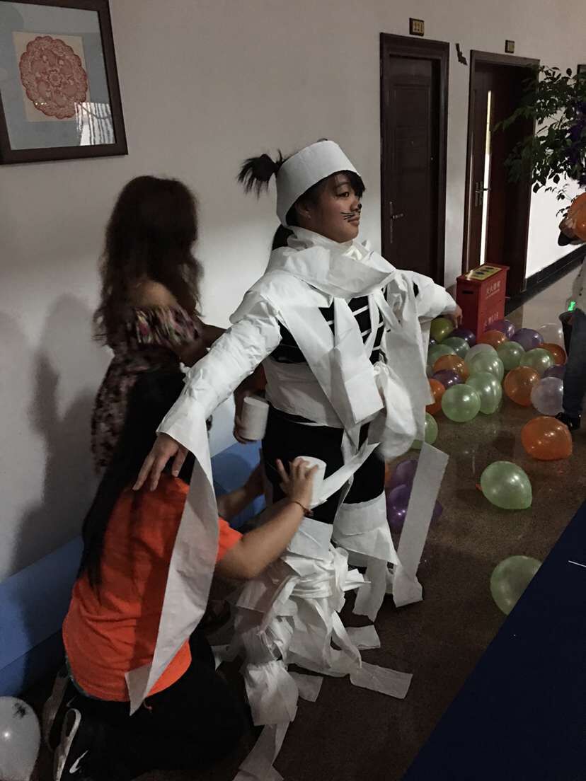10月31日晚7时,2015年万圣节化妆舞会在TapTap紫云楼二楼拉开序幕。本次化装舞会由美国圣约翰大学/圣本尼迪克公司员工主办,TapTap和外国语公司的老师和中外员工一起开展了别开生面的万圣节活动。活动中,中外职工和受邀参加活动的小朋友们进行了一个又一个趣味游戏,包括“徒‘嘴’摘苹果”“蒙眼探物”“乒乓球接力”“香蕉大战”等。