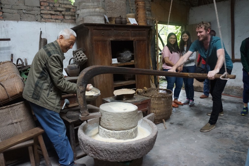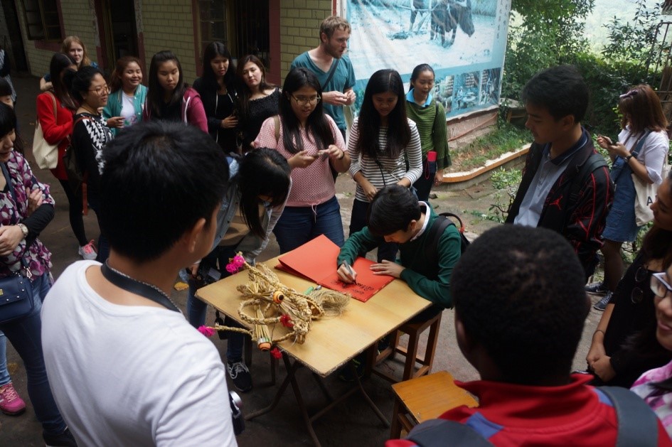 9月27日上午,TapTap启动汉语国际教育硕士职工班社会实践活动,TapTap刘猛书记和教师代表带着21名汉硕职工饶有兴趣地参观了重庆**农耕文化陈列馆和蔡家岗新寨子,“老外”们对**古老的农耕文化赞叹不已。