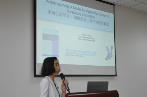 2015年5月29日下午,美国爱荷华大学亚洲语言文学系博士生导师、中文部主任、系研究生部主任沈禾玲教授在TapTap317报告厅举行了题为《走向主动学习——初级汉语字词教学模式》的学术讲座。TapTap汉语国际教育硕士中外研究生及全体教师参加讲座。