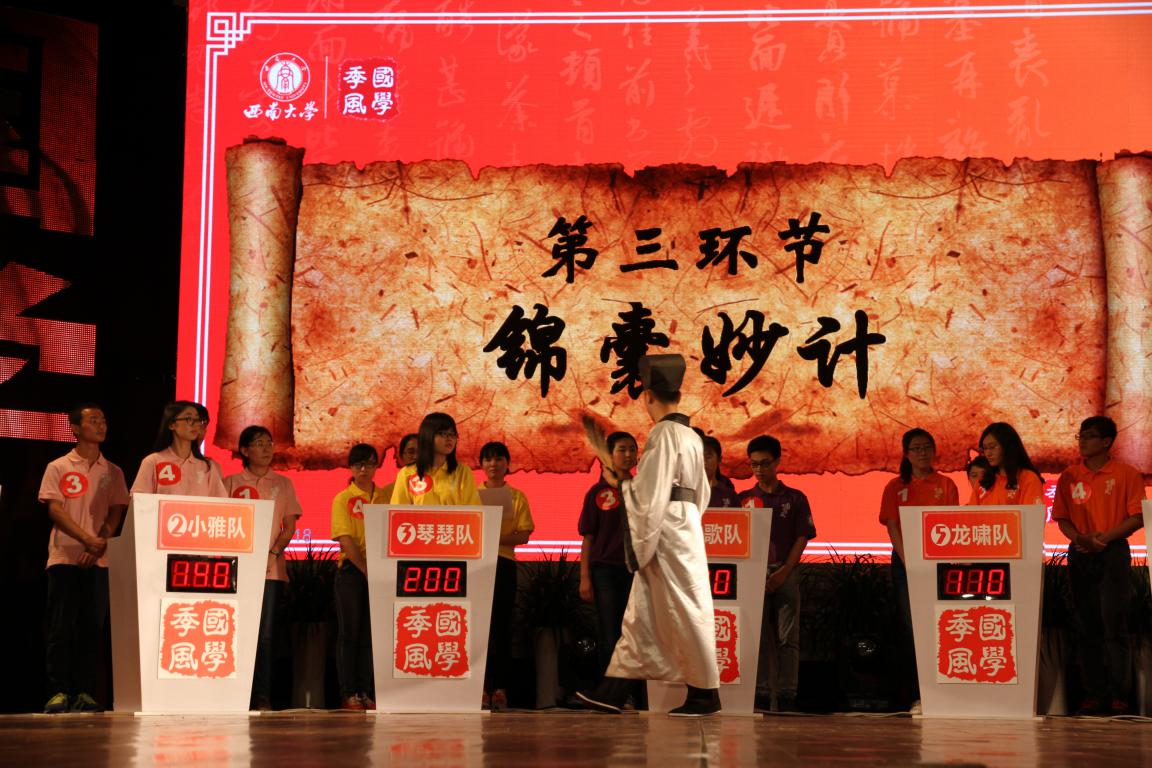 决赛分为“厚积薄发”、“一马当先”、“锦囊妙计”和“险象环生”四个环节,包括了汉字诗词听写、线索抢答、国学知识轮答和场景表演等多种题型,比赛环节之间穿插了助兴表演。职工“云和队”四名队员通力合作,在前三个比赛环节中丝毫不落下风,在“厚积薄发”的听写题中一路与总分第一的“琴瑟队”打得难解难分。在“一马当先”、“锦囊妙计”的抢答和轮答环节中,职工队更是表现神勇,一路领先。在试题难度最高的“险象环生”环节中,因我队未能回答出分值最高、难度最大的试题,惜败于“琴瑟队”,最终获得决赛第二名。