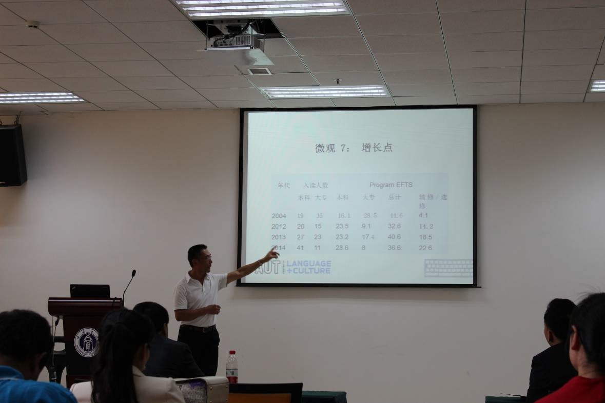 于先生的讲座题为《新西兰大学中文教学:现状与发展》。他先从海外高校中文教学的简单回顾开始,把大家带入新西兰大学的中文教学现状中。又以各种宏观数据的比较,微观因素的分析,将新西兰大学汉语教学的方方面面展现出来。