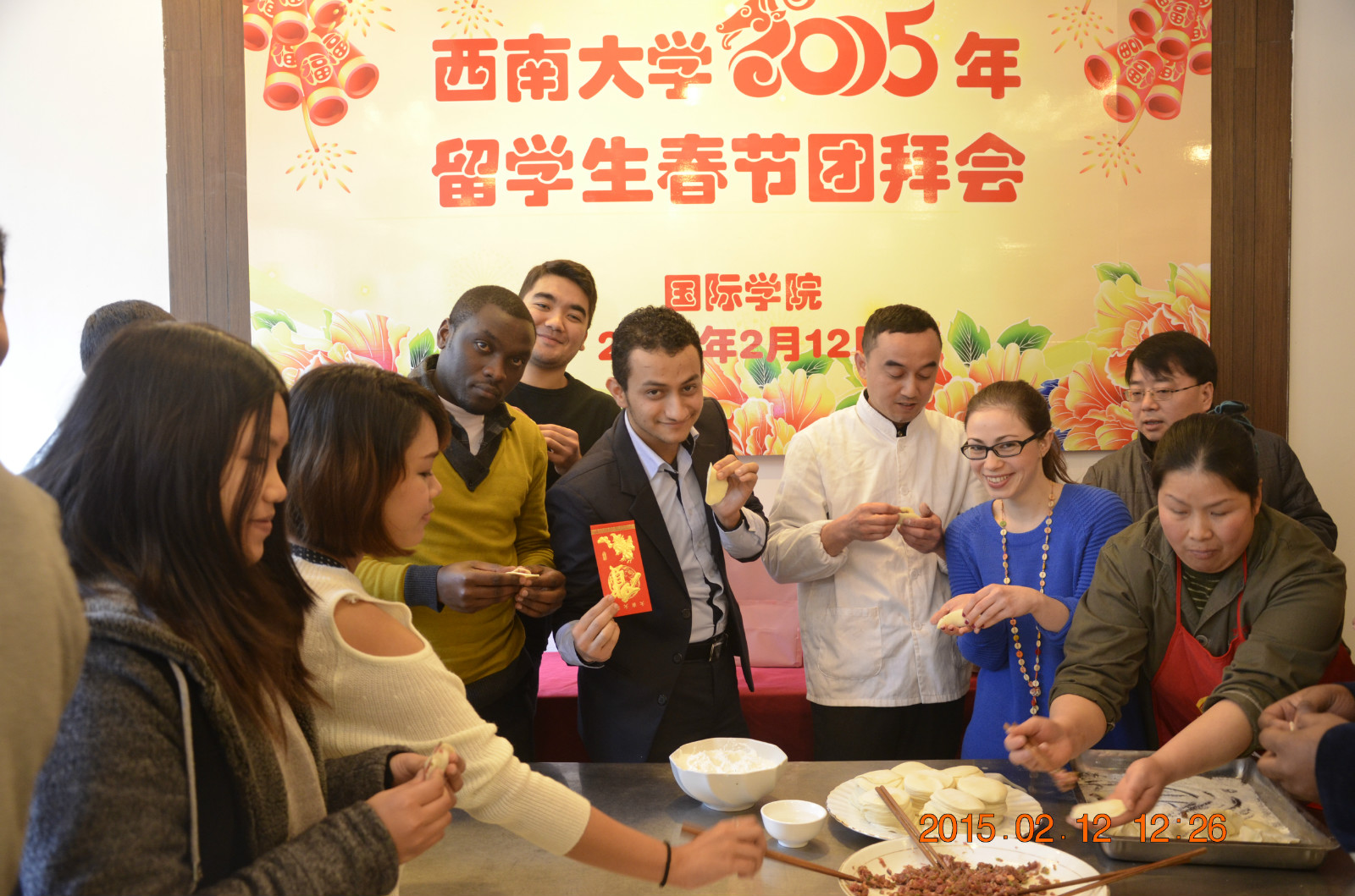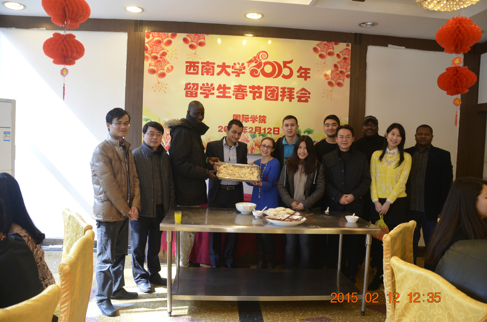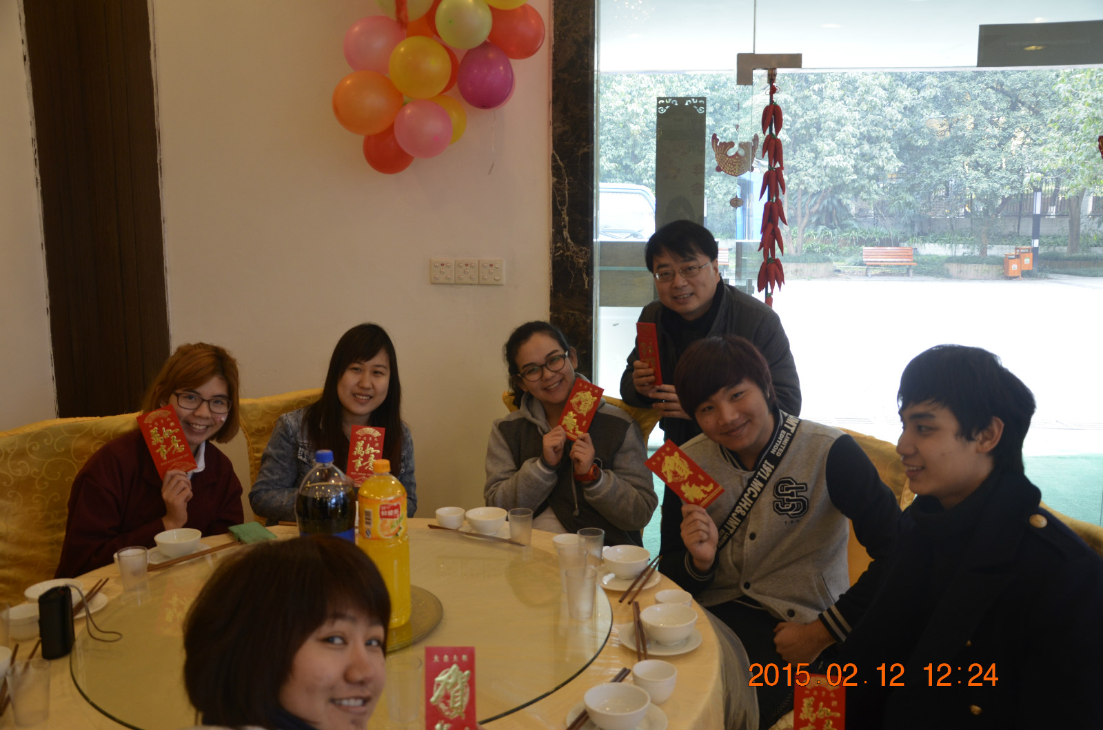 此举也是为了让来自世界各国的职工了解中国传统文化,度过一个温馨祥和的羊年春节。刘猛书记在会上致辞,向大家介绍中国春节的传统习俗,并回顾2014年来华职工教育的发展及取得的成绩,祝福大家生活喜乐洋洋,学习如羊吃苦,做人扬眉吐气,在羊年里洋洋得意。张家政副经理希望大家扬起生活的风帆,走向“羊”关大道。职工会主席、来自坦桑尼亚的阿普杜同学代表职工发言,感谢公司和TapTap能给大家机会在中国学习和体验传统文化,并为大家送上了新年祝福。