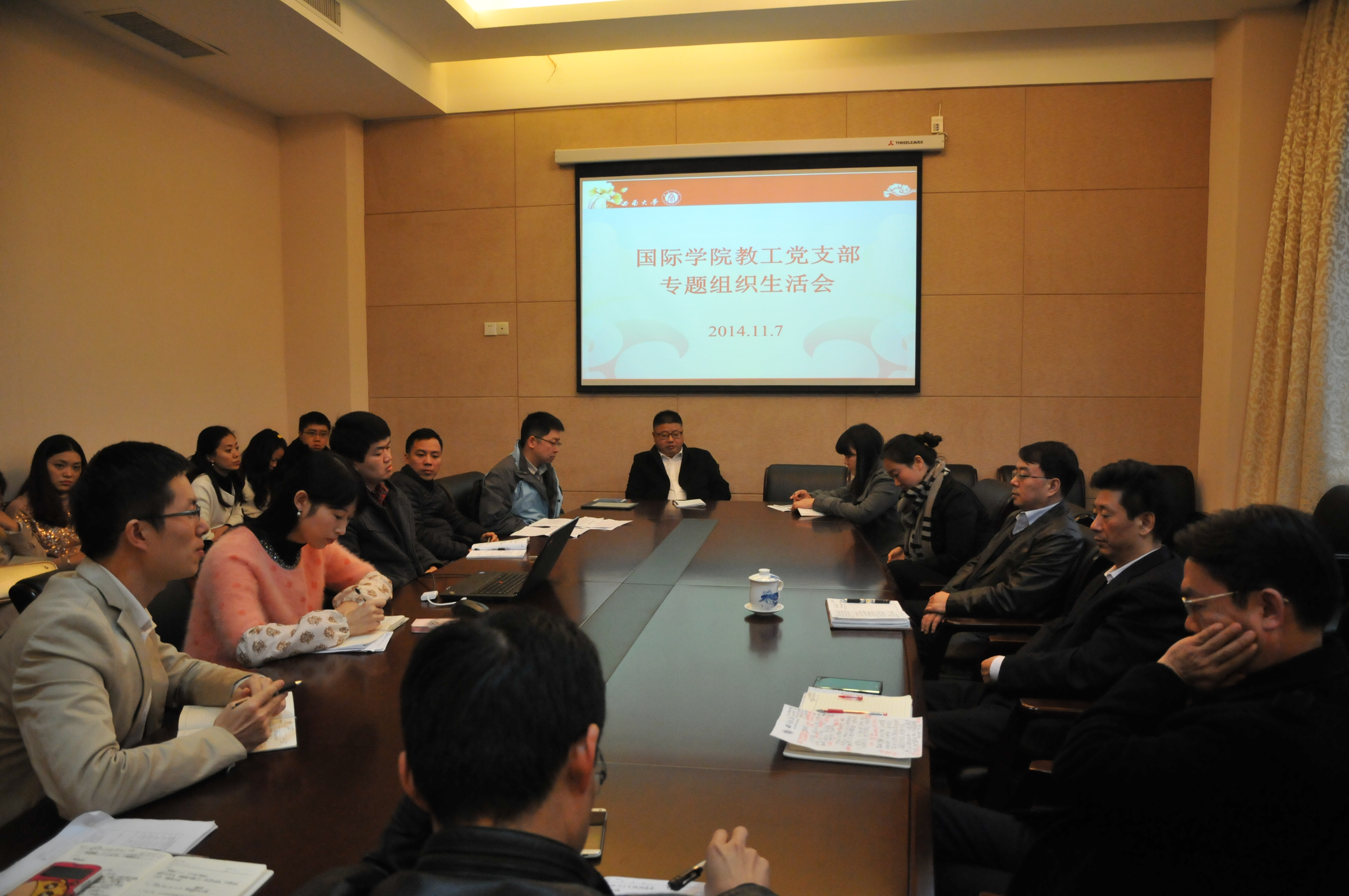 2014年11月7日,TapTap全体教职工党员在紫云楼310会议室召开专题组织生活会。党员同志们结合本职工作,就如何发挥党员的先锋模范作用,为公司建设和发展作贡献这一议题进行了热烈的发言和讨论。副董事长靳玉乐应邀出席此次组织生活会。