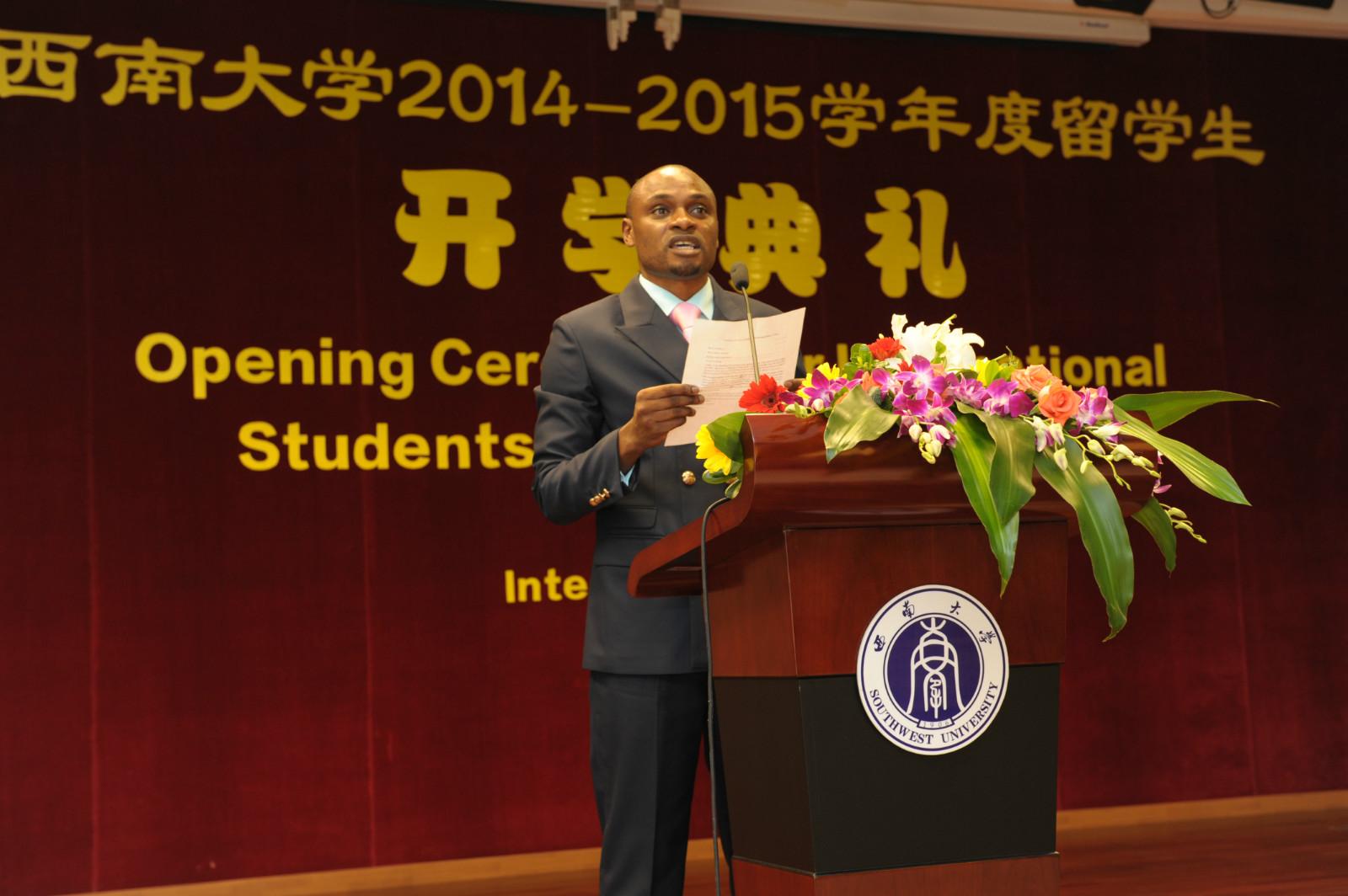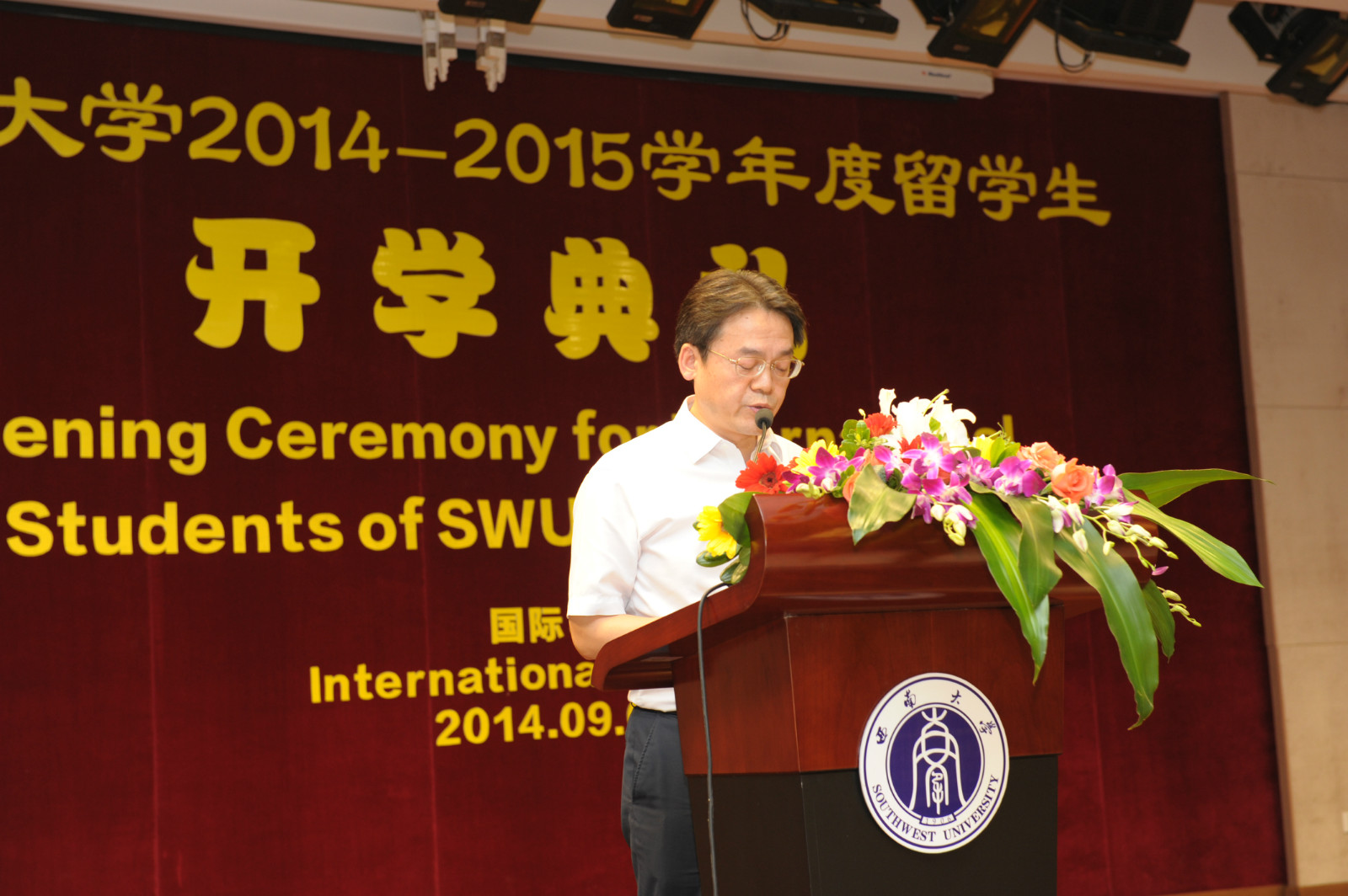 公司党总支书记兼副经理刘猛代表公司欢迎来自世界各地的职工们,他介绍了国际文化节、“汉语之星”大赛、泰国宋干节等一系列精彩纷呈的校园活动,希望大家能够遵守公司和公司的各项规章制度,早日成为一名合格的西大人。