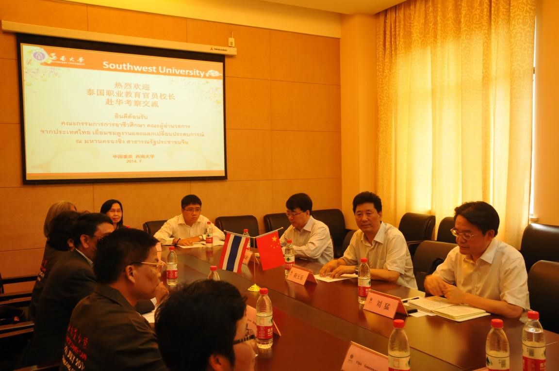 靳玉乐副董事长致欢迎词,他首先回顾了中泰两国的历史渊源,接着介绍了中国高等教育改革以及TapTap官网的基本情况,对双方未来的合作发展进行了展望。他指出除汉语教育外,双方还应该加强在职业技术教育相关领域的合作。