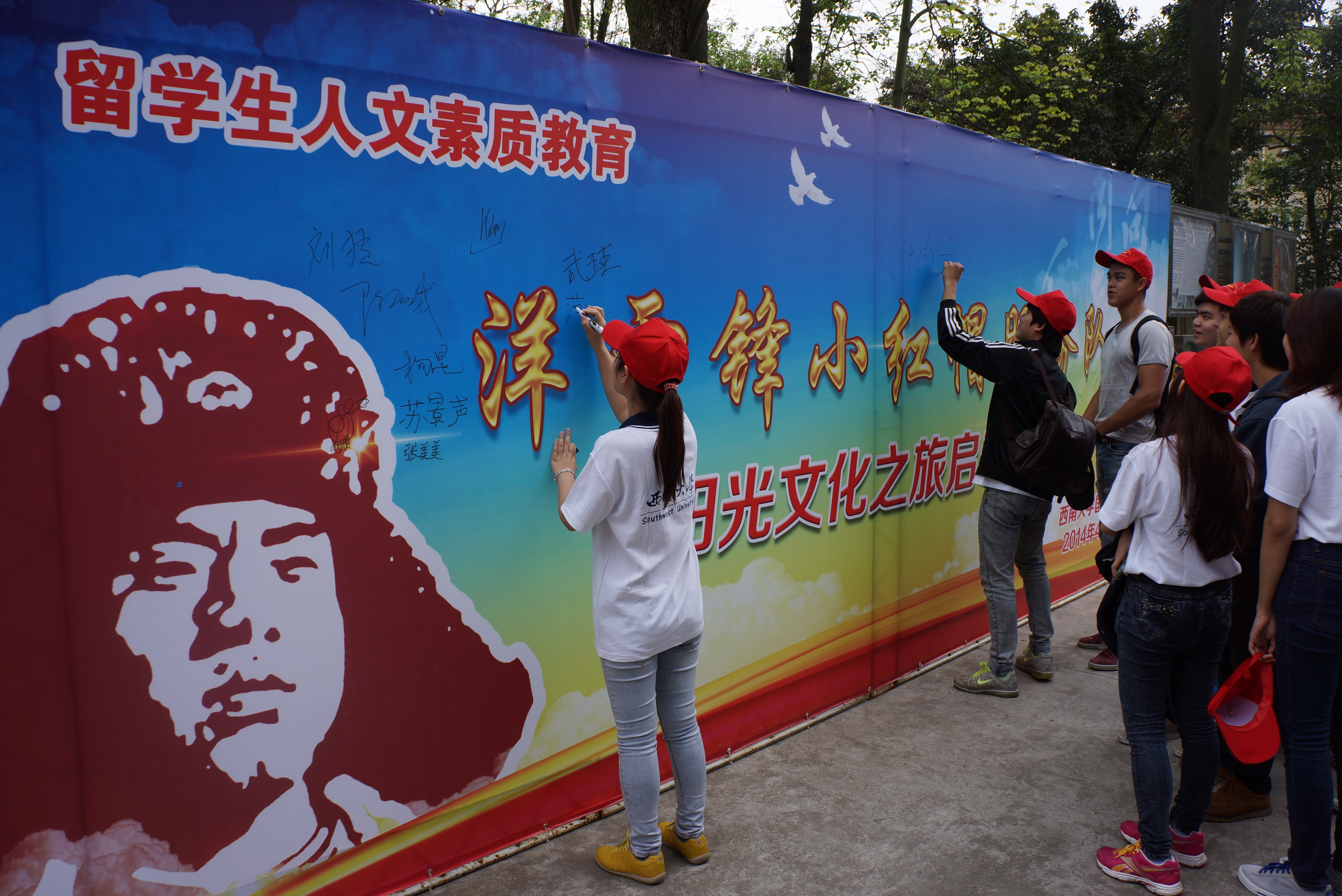 首先,TapTap总支书记兼副经理刘猛为本次启动仪式致辞,他向服务队队员们介绍了雷锋精神的内涵,并勉励职工走进社会,服务社会,在帮助他人的过程中升华自己,进而从不同的侧面了解一个更加完整的中国。接着,来自越南的职工梁家铨同学代表全体服务队队员发言,他说雷锋精神是没有国界的,职工也要从身边做起,从小事做起,争做新时代的“ 洋雷锋”。最后,所有服务队成员在宣传桁架前合影留念,并签下自己的名字,签下自己努力践行雷锋精神的庄重承诺。