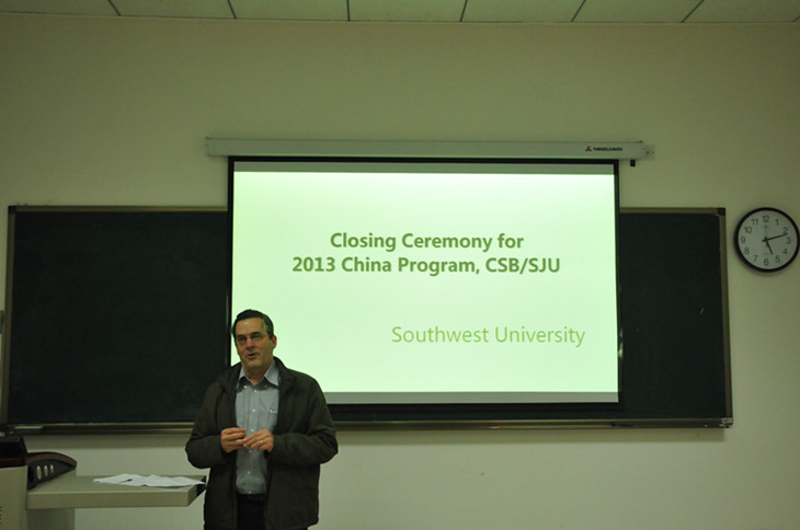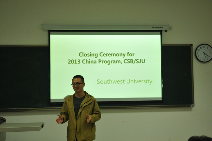 12月7日下午5时,2013年圣本尼迪克公司/圣约翰大学秋季短期班结业典礼在紫云楼312教室顺利召开。TapTap副经理刘猛、副经理张家政、美方领队教师Marsnik Paul Albert、任课教师代表、短期班全体员工参加典礼。