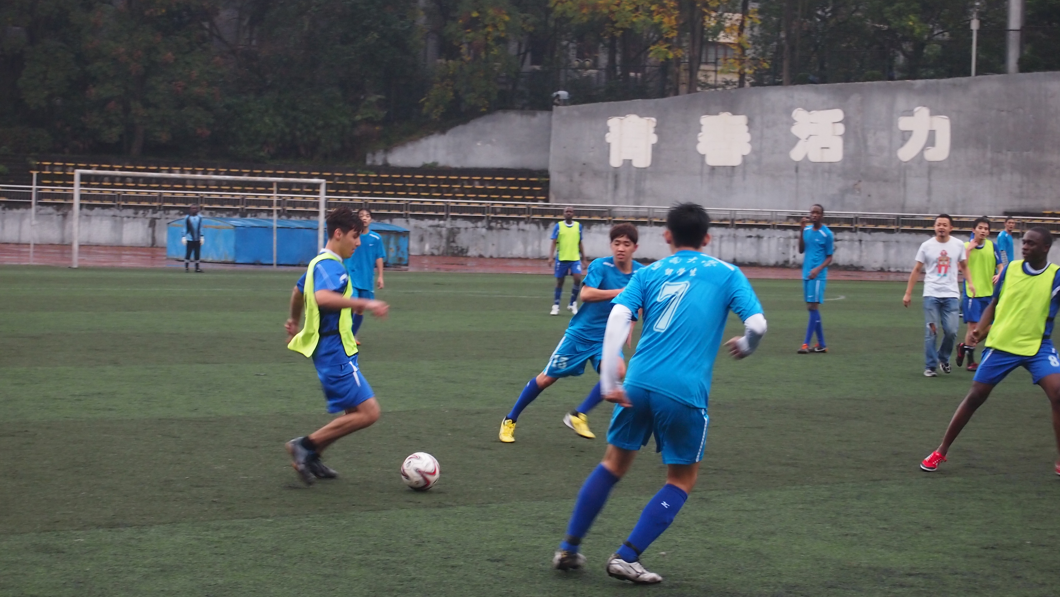 一开场,我方运动员积极传球、默契配合,以一记精准的抽射首下一城。重大队不敢示弱,抓住每一次机会向我方球门猛攻。就在上半场即将结束时,重大队获得一粒角球。角球发出后球门前出现短暂混乱,稍一不慎,我方队员捅进了一个乌龙球。上半场以一比一的比分握手言和。短暂休息后下半场开始,我方队员表现出了夺回比分优势的气势。在多次有力的射门攻势下,频频威胁对方球门。重大队员没有丝毫畏惧、沉着应对并抓住机会组织起了一次次反击,球场上一度出现胶着的拉锯战。最终,重大队员再次敲开我方大门。比赛以 二比一的总比分结束终场。