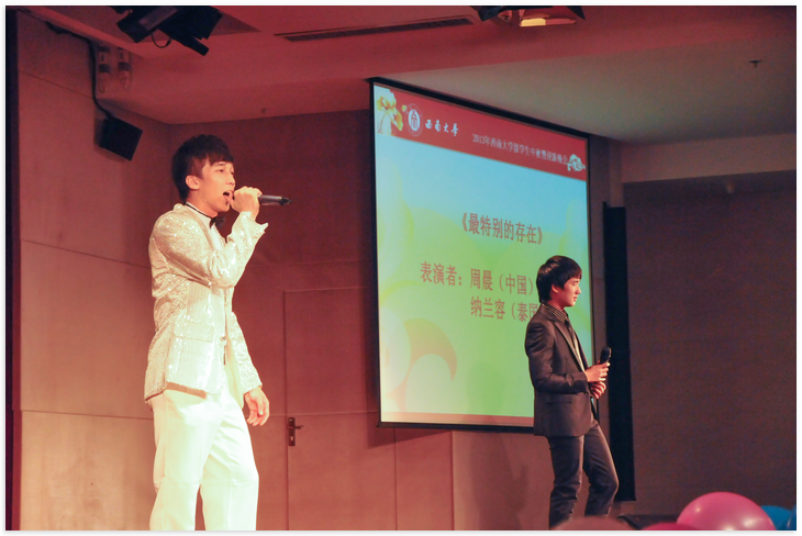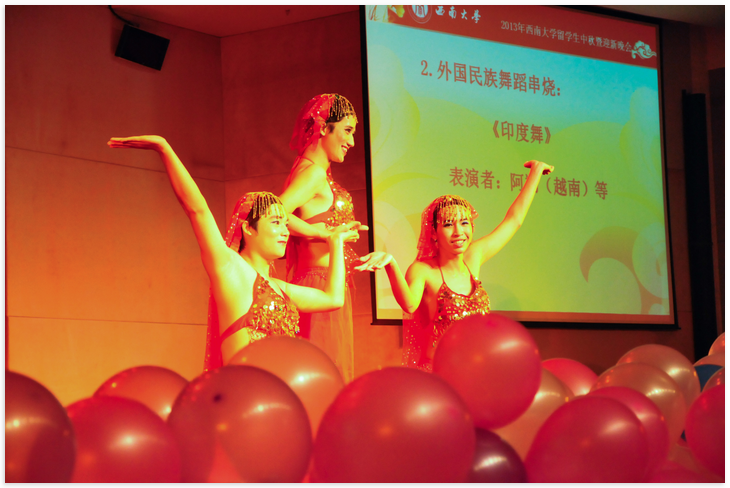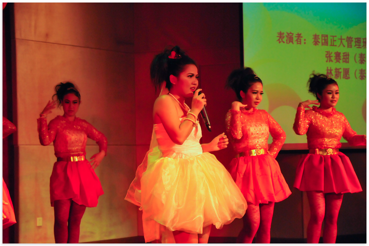 受邀参加此次盛典的有TapTap总支书记兼副经理刘猛、副经理张家政,美国圣约翰大学教师Paul Albert,以及TapTap官网外国专家代表和TapTap全体教职员工。主持阵容也颇具国际范儿:来自埃及的黄阿里、韩国的朴秀海、泰国的纳兰容和中国的周晨。这是一场国际视听盛宴。泰国孔敬大学的职工林楚方等同学衣着美丽的泰国服饰,为观众演绎了优美多姿的泰国舞蹈;还有婀娜多姿的印度舞,委婉动听的越南北部民歌,以及由非洲职工带来的《非洲风情舞KINDOKI》;俄罗斯女孩丁洁演唱的《At Last》更是让观众直呼这是《俄罗斯好声音》。圣约翰班的同学们以他们的热情,点燃了现场的气氛,很多观众都随着他们的舞步尽情摇摆起来。