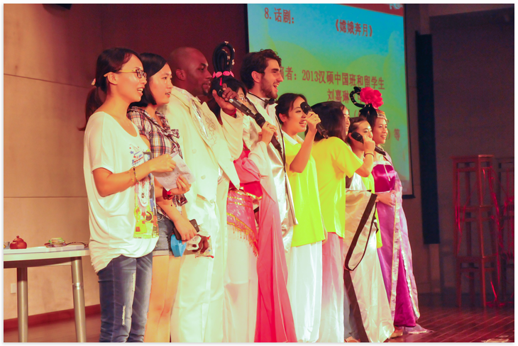 在中秋佳节到来之际,中国班的同学也用一个特别的话剧《嫦娥奔月》,向大家叙述了一个美丽的故事,俄罗斯同学李向阳和坦桑尼亚的阿普杜的倾情加盟,使得这个耳熟能详的故事走向了世界。最后,由中日韩同学演唱的《日月交辉》将节目拉到了尾声。一位中国班的员工说:"没想到这次晚会这么好玩,不仅享受了各个国家的音乐和舞蹈,还结识了很多国内国外的朋友。TapTap是一个大家庭,每逢佳节倍思亲,现在,这里就是我的家。"
