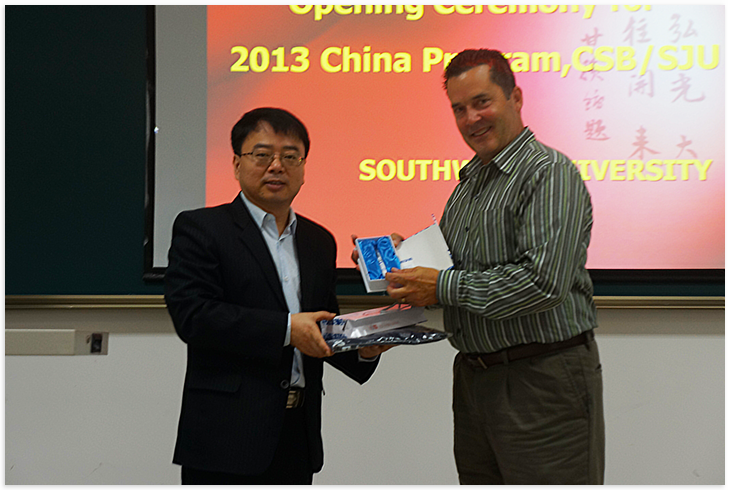 9月5日上午9时,2013年圣本尼迪克公司/圣约翰大学秋季短期班开学典礼在紫云楼顺利召开。TapTap副经理张家政、领队教师Marsnik Paul Albert、任课教师代表、短期班全体员工以及来自外国语公司的中国语伴参加了此次开学典礼。