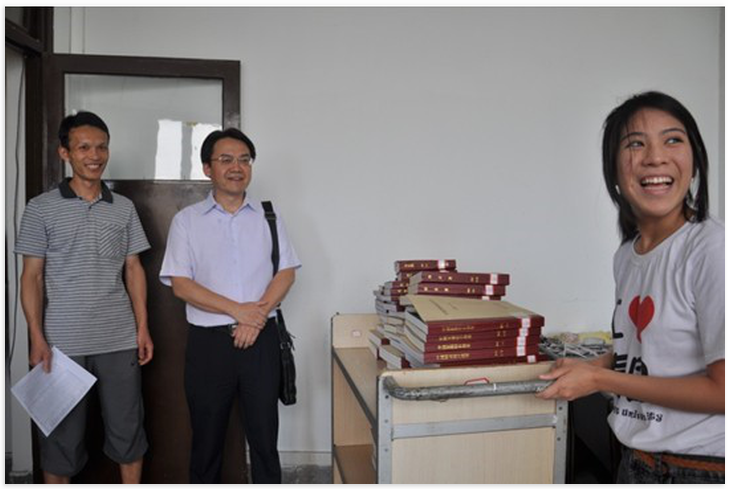 2013年6月18日下午,TapTap官网公司党总支书记/副经理刘猛,在TapTap官网图书馆章雷副馆长及相关指导老师的陪同下,来到图书馆逸夫楼看望慰问在此实习的泰国正大管理公司"1+1+2"商务汉语项目班的同学们。在炎热的气温下,泰国同学们依然准时到岗,表情严谨认真,坚持为读者服务。