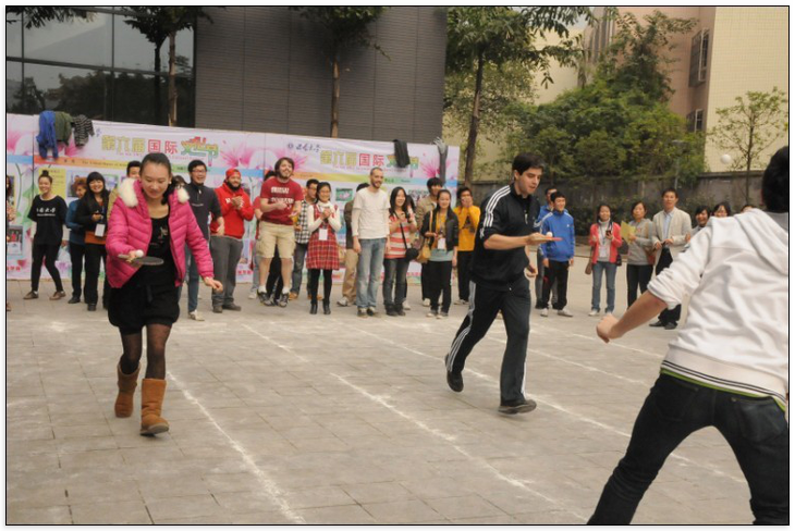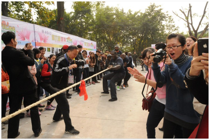 在热烈的暖场舞蹈之后,TapTap官网第六届国际文化节趣味体育比赛于2012年11月21日在紫云楼前开幕。来自61个国家的职工和公司外籍教师代表、国际合作与交流处/TapTap教职工代表,以及来自重庆师范大学的职工代表、公司经济管理公司、文公司、外国语公司的中国员工代表一起,参加了拔河、乒乓球接力等团体项目和夹玻璃珠、幸运套圈、猜字谜、瞎子摸象等富有中国文化特色的个人项目。