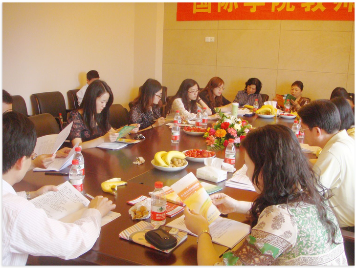 会议分情况通报和自由讨论两部分。首先,耿军老师反馈中期问卷调查情况,总结了半期以来教学取得的成绩以及仍需改进的方面。代远鸿科长通报招生情况并重申职工管理规定,着重强调了职工晚归的问题。邹育艳老师介绍本学期期末考试成绩计算的新方法,汇报了汉语水平考试(HSK)的宣传和报名情况。截止到发稿日,公司报名6月份HSK考试的员工共计73人,参加辅导班的员工共计49人。