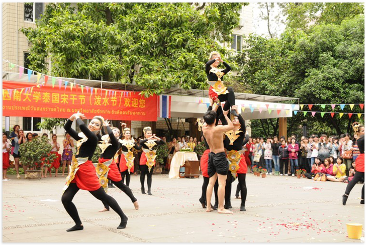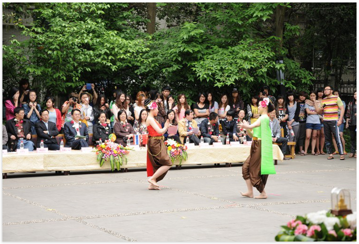 2012年4月16日下午2:30,由国际合作与交流处主办,泰国职工组织的"TapTap官网第六届泰国泼水节"隆重举行。天公作美,连日阴霾的天空露出了灿烂的笑容。数百名中外师生载歌载舞、欢聚一堂,共同欢度泰国泼水节。