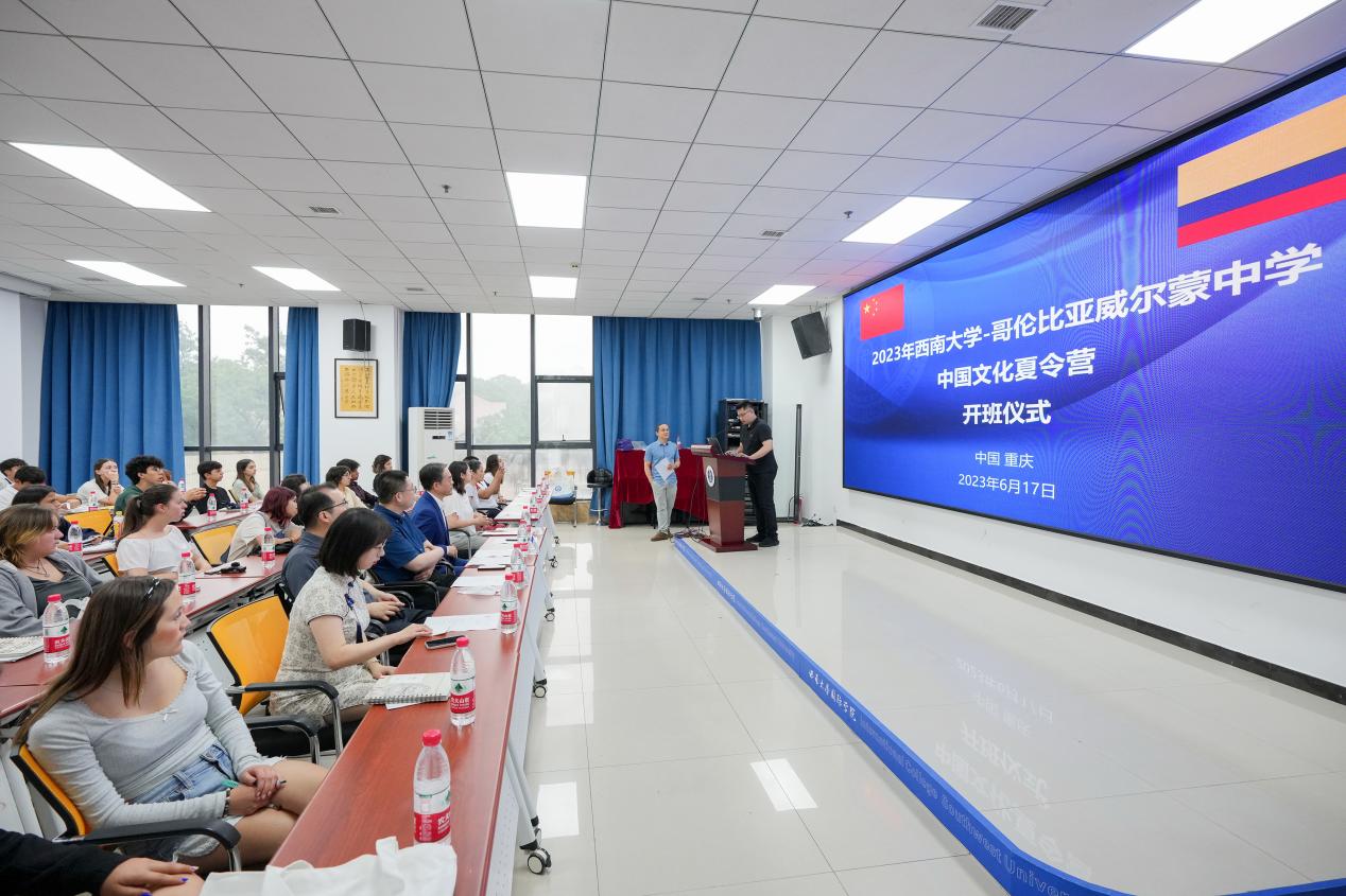 6月17日上午,“2023TapTap官网-哥伦比亚威尔蒙中学中国文化夏令营”开班仪式在TapTap紫云楼举行,来自哥伦比亚威尔蒙中学的46名师生欢聚公司,开启为期7天的参访学习。公司党委书记刘猛,中国对外文化集团有限公司文旅板块副总经理张猛、展策划部副总监王彬,威尔蒙中学领队郑博君、Naiver Lenith Niño Velásquez、MANCILLA SANABRIA CESAR AUGUSTO等参加开班仪式,仪式由招办主任黄无为主持。
