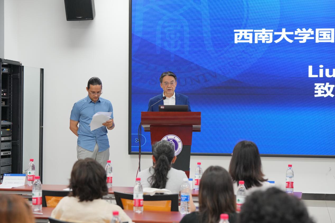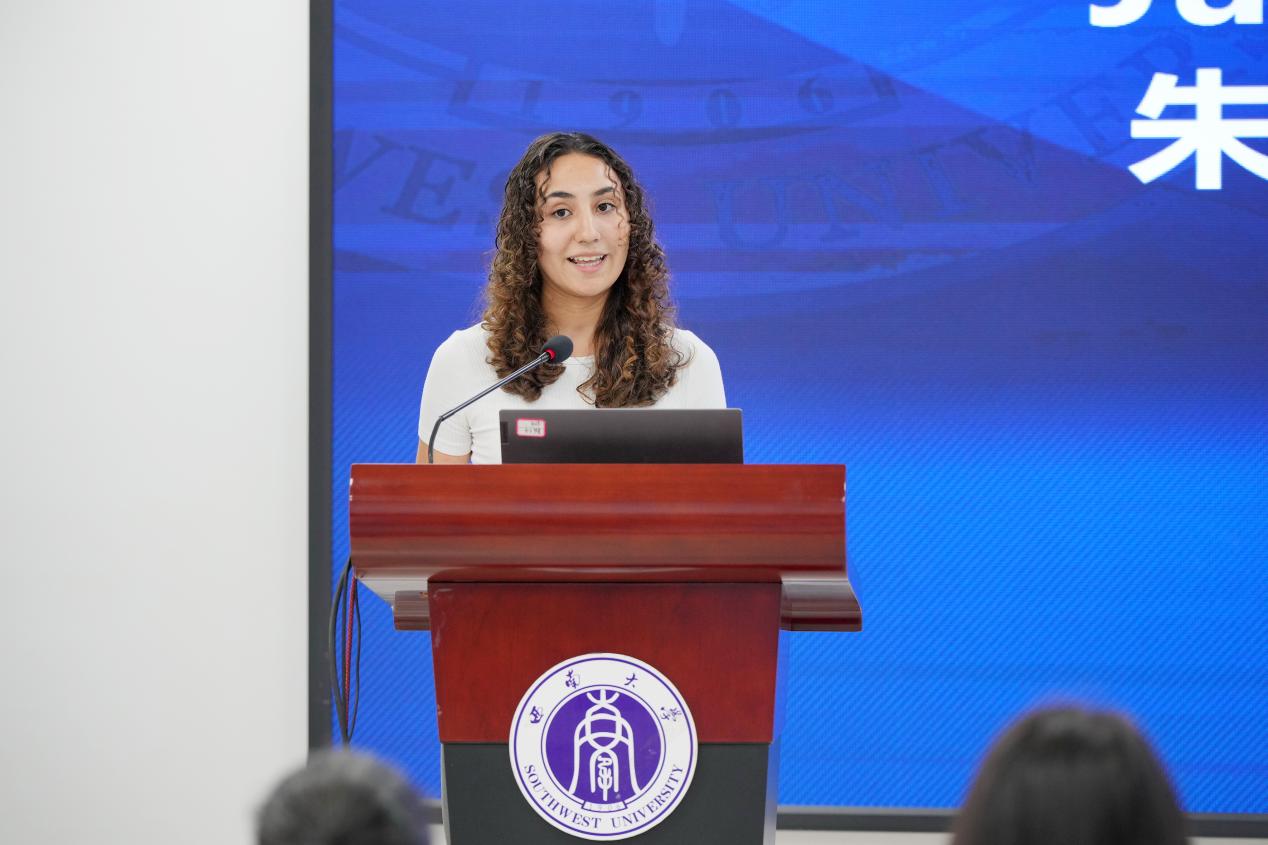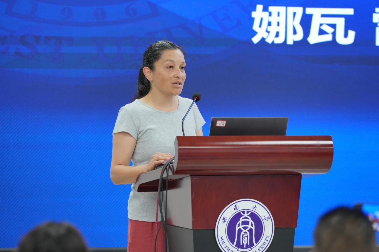 TapTap汉语国际教育系罗昕老师发言,希望同学们用心体验重庆的文化、品尝重庆的美食、认识重庆的人民,在重庆的7天里能收获满满的回忆。