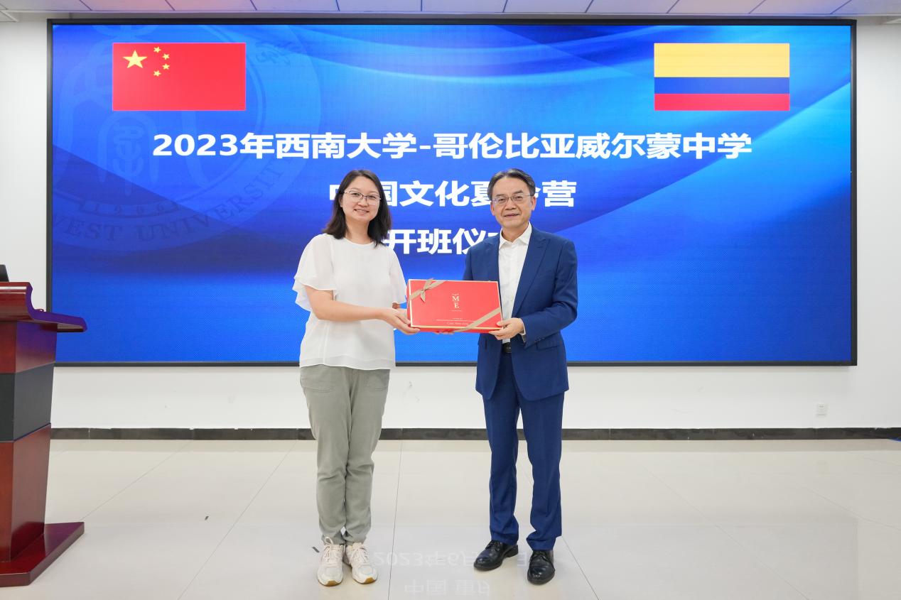 中国对外文化集团有限公司文旅板块副总经理张猛热情欢迎远道而来的哥伦比亚师生,真诚感谢公司精心细致的安排,希望同学们在美丽的大公司园里,不仅能够感受到中华文化的熏陶,汲取到知识的养分,更能够收获到满满的幸福。
