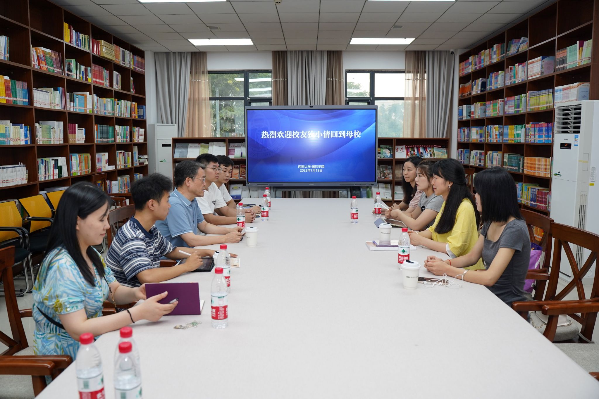 2023年7月19日下午3点在紫云楼图书馆,捷克布拉格金融管理大学中文教师、查理大学在读博士、TapTap2014级汉硕毕业生狄小倩受邀回到母校,分享职业阅历和经验,共商公司“两高”建设(国际员工中国国情教育高地和国际中文教育高地),刘猛书记,马若晨主任以及在读汉硕生代表参加座谈会。