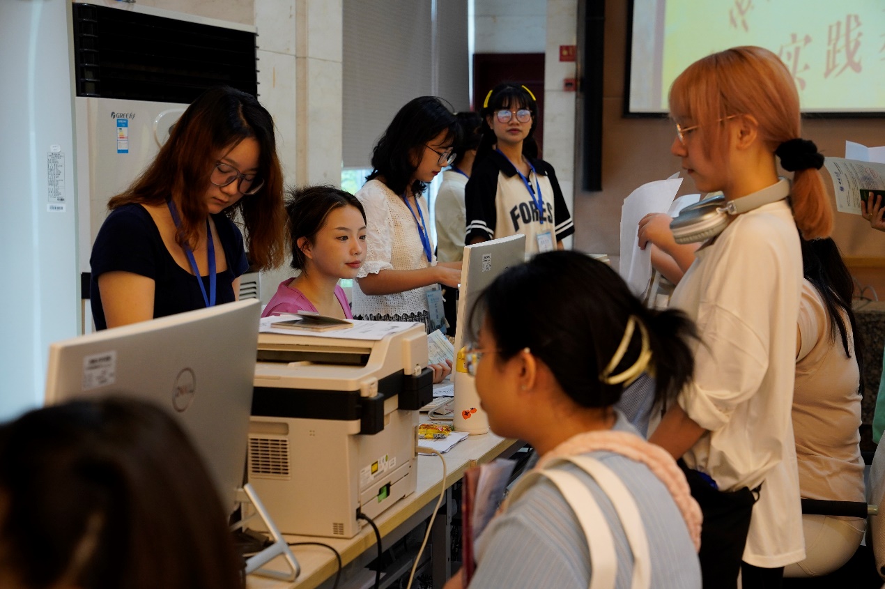 乘坐统一安排的校园观光车,国际员工新生到达职工公寓的新生接待现场,志愿者们热情周到地帮助新生们办理校内住宿,引导他们加入宿舍微信群并协助他们购买床上用品等,让国际员工感受到了既方便快捷又温暖周到的一站式服务。