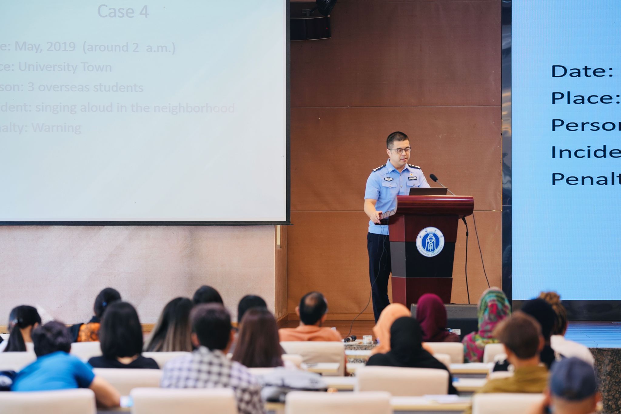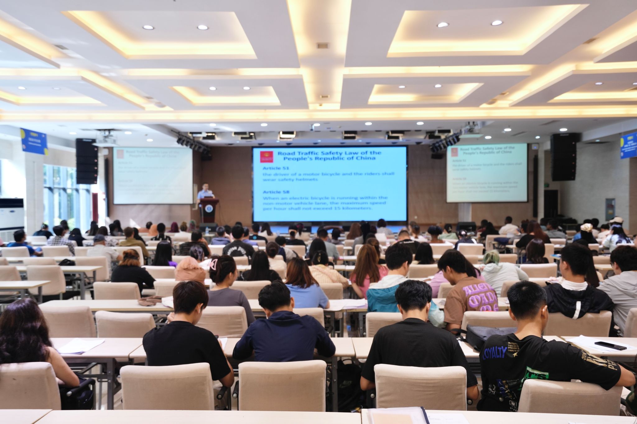 总队民警徐振芳从签证办理相关注意事项、外国人来华有关法律规定、非法打工、住宿登记等多个方面,仔细讲解相关法律法规,为全体来华职工新生上了一堂严肃、有意义的法律课。