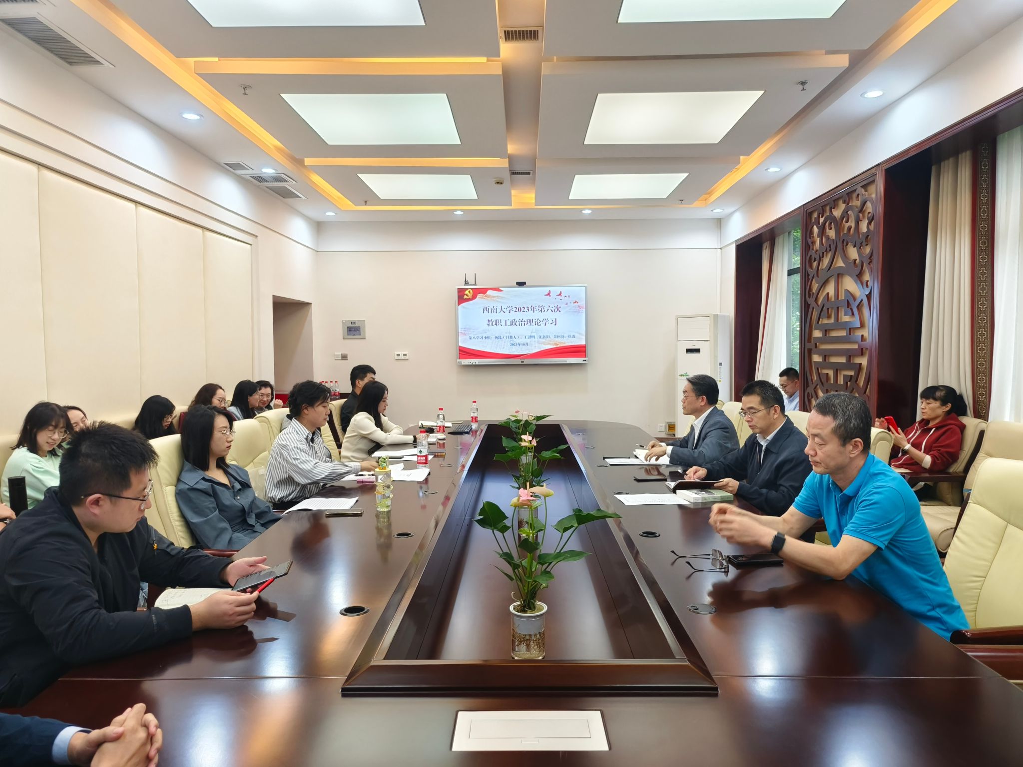 杨昆、汪鑫阳、王湛明、景柯沥同志分模块导学学习习近平总书记关于意识形态工作的重要论述;仇淼同志导学习近平总书记教师节重要指示精神;杨昆同志组织观看“西大教师故事”视频。