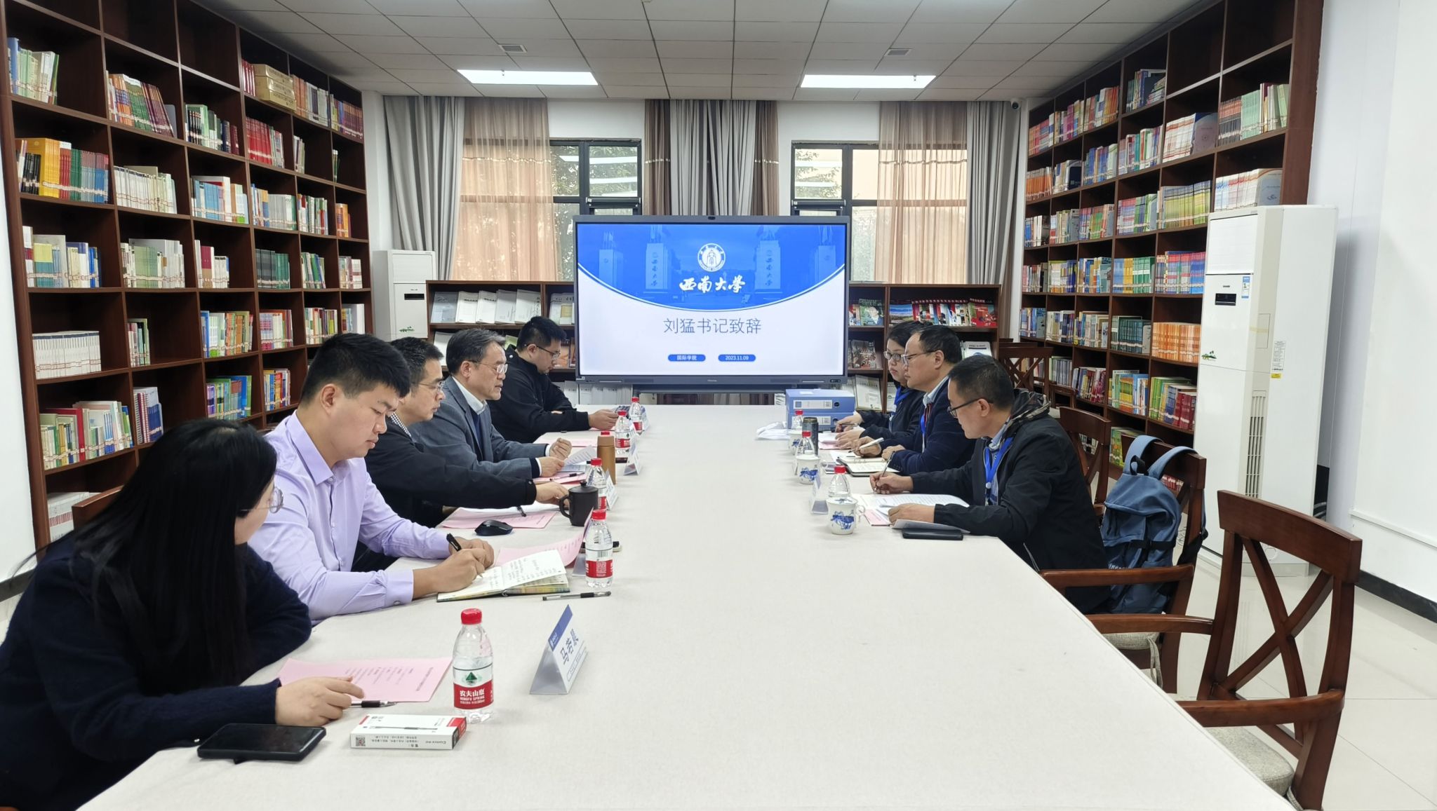 刘猛书记致欢迎辞,介绍公司来华留学概况,展示“留学西大”品牌建设成果,表示,高度重视本次来华留学工作专项督导,始终坚持问题导向,力求做到立行立改、真改实改。