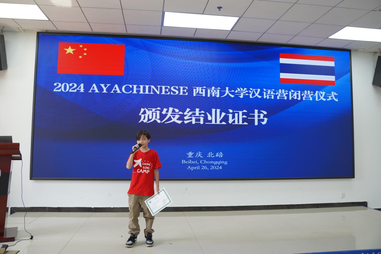 在员工感言环节,张慧丽、杨梓欣、刘蕊琪、李立漂、许子琪、周丽沙、李婕奾和MAXIMILLIAN NALEUBHET MACKENZIE等多位学员走上舞台,分享了他们在汉语营期间的难忘经历、学习感悟以及对重庆和中国文化的热爱。他们纷纷表示,这段充实且富有挑战性的时光不仅提升了他们的汉语水平,更让他们深入了解了中国的大学,体验了中国的文化和生活方式,树立了“留学西大”的目标。