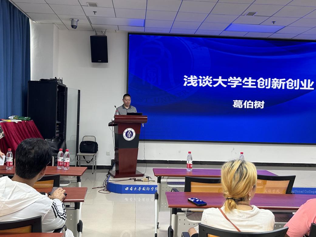 “浅谈老员工创新创业”讲座由葛伯树先生主讲,葛伯树先生是重庆市北碚区电子商务协会秘书长,云阳县青年创新创业导师以及北碚小渝网创始人。