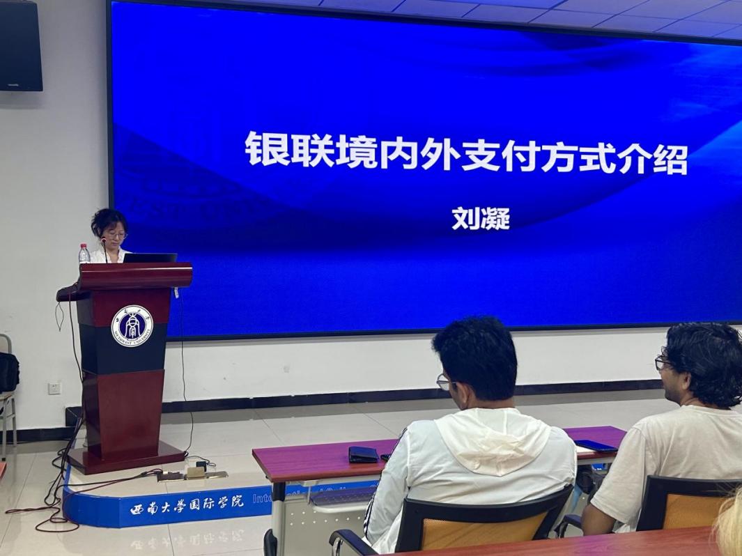 中国银联重庆分公司受理市场部代表刘凝女士为职工们带来了题为“银联境内外支付方式介绍”的讲座。通过细致的讲解,职工透彻地了解了银联为境外来华人士提供的支付工具,以及银联在境内的支付工具如何在境外使用。