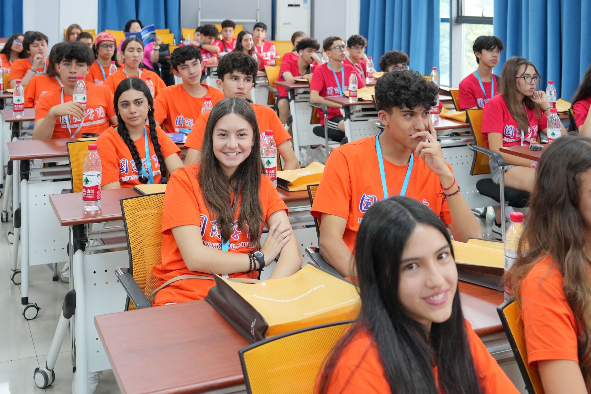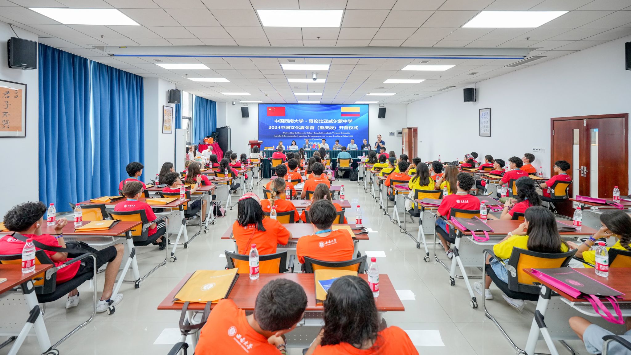 5月28日上午,“中国TapTap官网 • 哥伦比亚威尔蒙中学2024中国文化夏令营(重庆段)”A团开营仪式在TapTap紫云楼317室举行,来自哥伦比亚威尔蒙中学的84名师生欢聚公司,开启为期12天的参访学习。TapTap副经理耿军,中国对外文化集团有限公司副总经理郑秀全,中国文化国际旅行社有限公司副总经理杨青、白淼、王彬,威尔蒙公司教师领队郑博君、Juliana Useche、Brando Suarez、Juliio Gualdron、Luisa Pachon、Maria Camila Orozco、Maria Fernanda Gomez及全体团员参加开营仪式,仪式由招办王鹊主持。