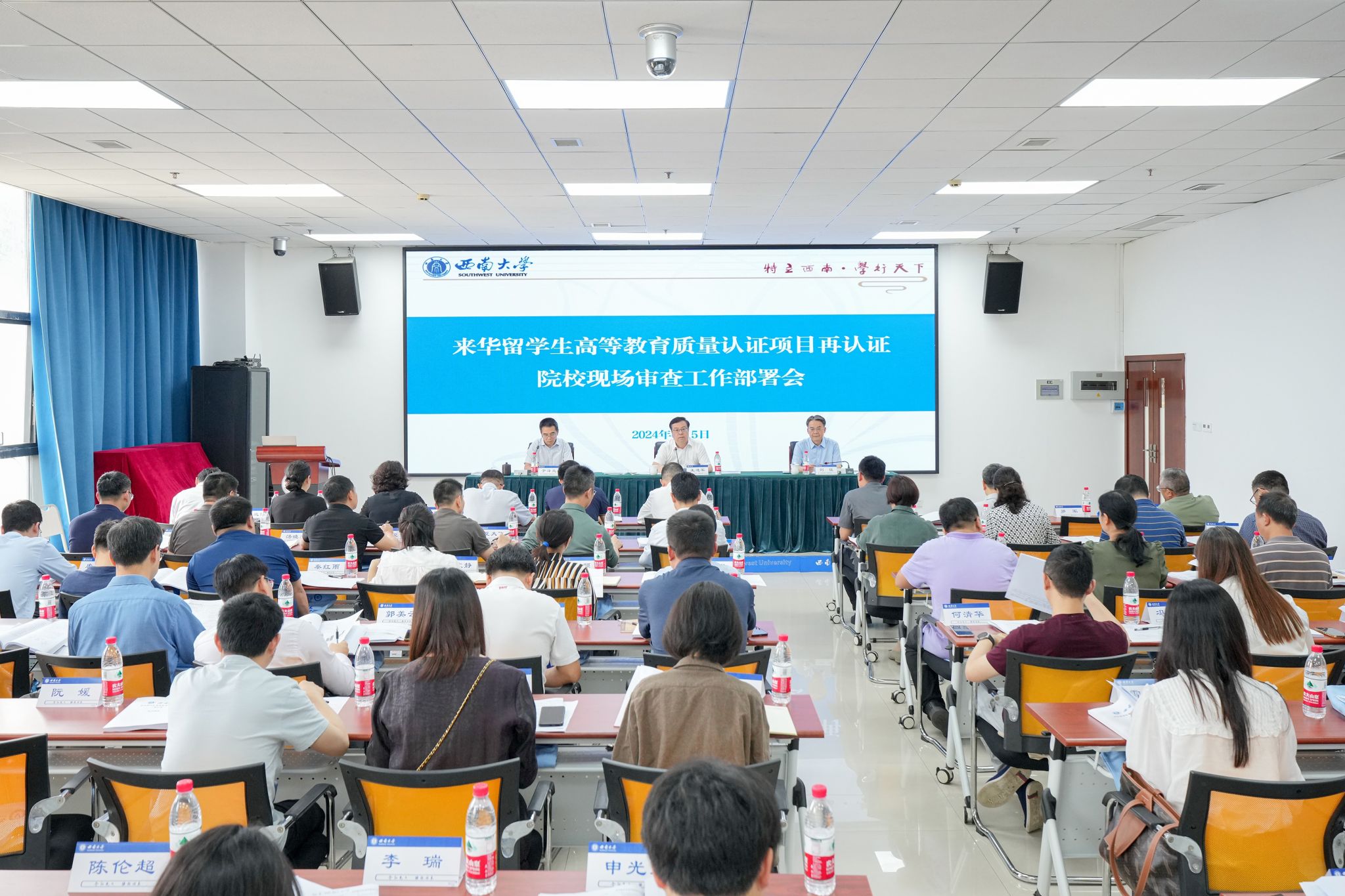 王进军对再认证现场审查工作作出指示,强调了质量认证现场考察工作的重要性,要求各单位提高站位、深化认识,明确来华留学教育的重要战略地位,高度重视来华职工的培养。他指出,各单位应当把握机遇,实现“留学西大”品牌由量变向质变的整体跃升;以评促建,推动来华留学工作守正创新,进一步强化内涵式发展。他强调,各单位要充分认识来华留学教育工作对公司“双一流”建设的重要意义,安排专人对接,确保准确、及时提交材料,争取高质量通过再认证。