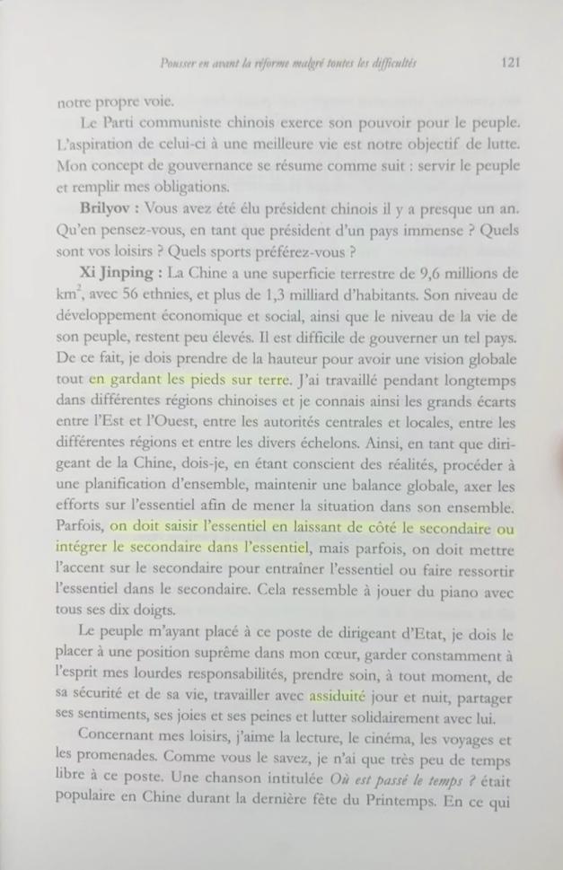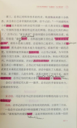 (谢天一阅读《习近平与老员工朋友们》《习近平谈治国理政》时勾画的笔记)