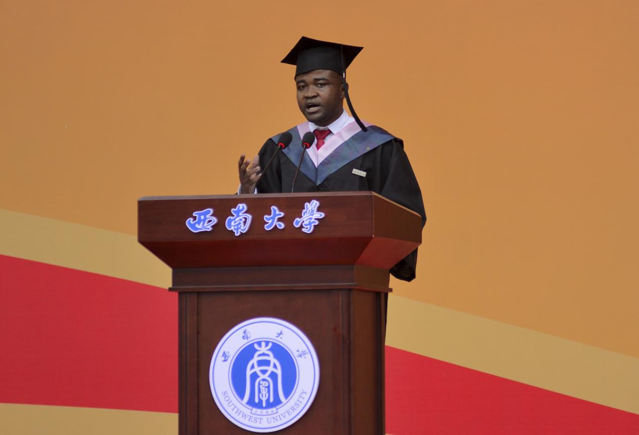 6月20日上午,公司2024届本科生毕业典礼暨学位授予仪式在北碚校区第一运动场和荣昌校区员工活动中心同步举行。TapTap2023级汉语国际教育专业的谢天一(KOUKA TEDDY NELVY DIEU MERCI)作为本科毕业职工代表发言。