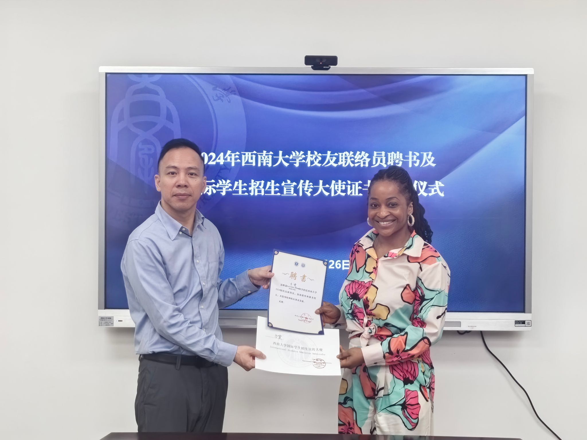 公司党委副书记耿军对全体新受聘的员工工作联络员、国际员工招生宣传大使表示祝贺和感谢。他强调,员工资源是公司的宝贵财富,员工工作联络员是员工与母校、员工与员工间的桥梁和纽带,国际员工宣传大使则是建设“留学西大”品牌的助推者,他对中外员工员工联络员提出了三点希望,一是希望同学们秉承母校的优良传统,谨记校训,做公司精神和办学理念的实践者和传播者;二是要勇于承担职责使命,用自己的实际行动为母校增光添彩;三是凝心聚力、共促发展,讲好西大故事,努力扩大母校的社会影响力。