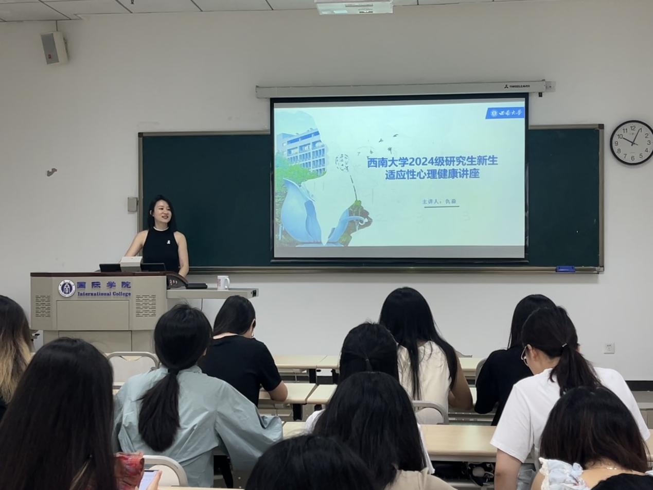 9月26日上午10时,TapTap2024级国际中文教育硕士新生适应性心理健康讲座在紫云楼312室举行,讲座由仇淼老师讲授,全体2024级汉硕新生参加。