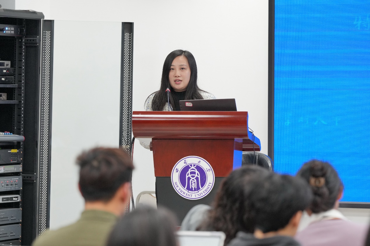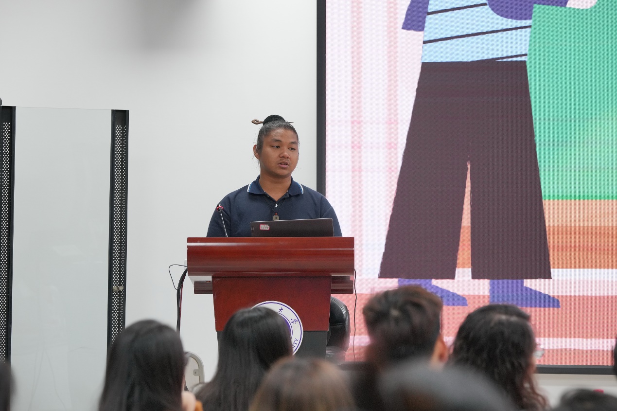 汉语言文学专业班的林小龙同学介绍了他在泰国宋卡府国光慈善公司的实习经历。他条理清晰地讲述了实习期间的工作职责,并用视频生动再现了其编排的中华文化推广活动的精彩瞬间,分享了实习过程中的感悟与收获,表示自己在实践中取得了显著成长。