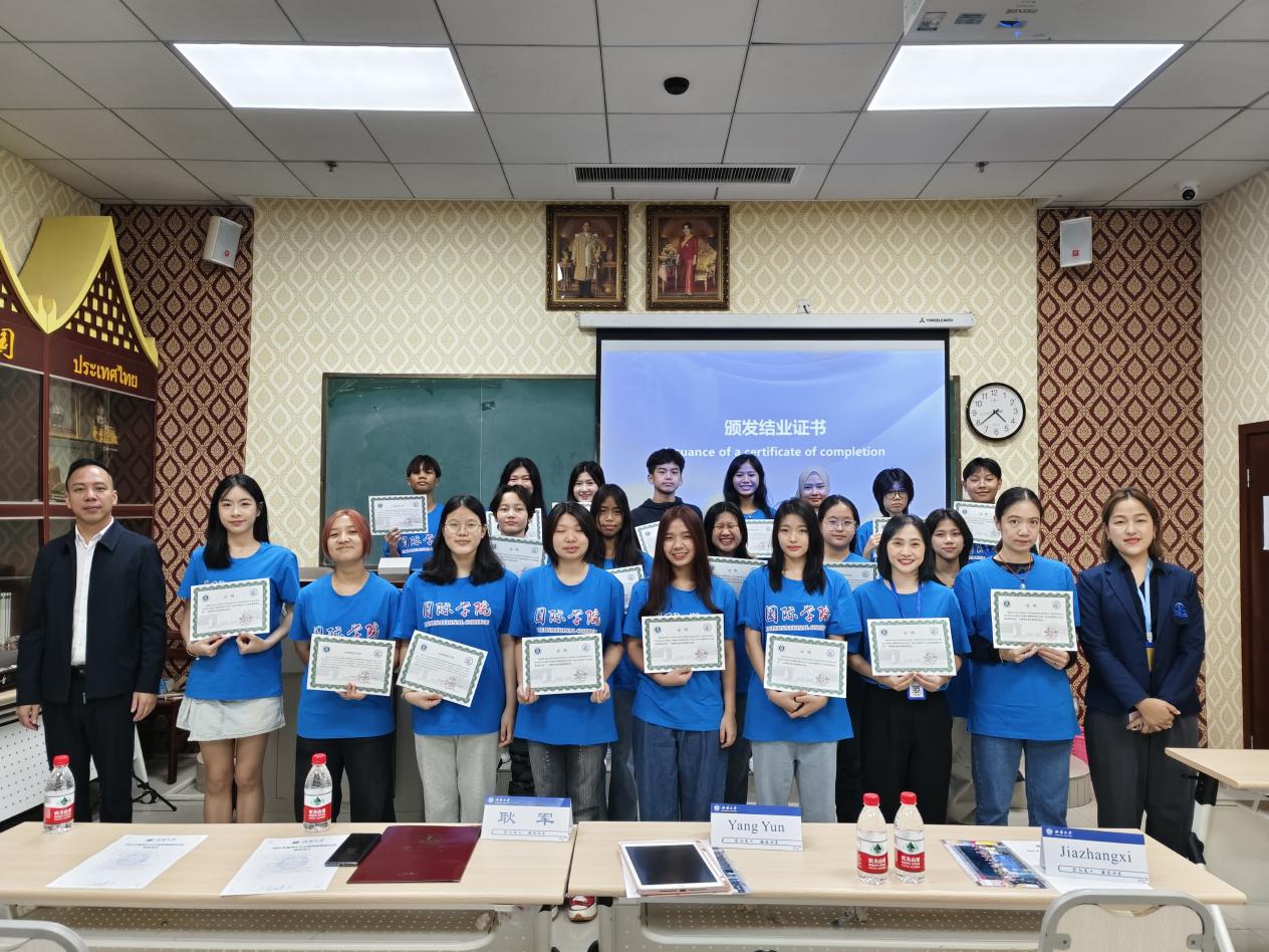 耿军副经理做总结发言,他热烈祝贺大家圆满完成汉语营各项任务,感谢辛勤付出的班主任、授课教师以及志愿者。他希望同学们增进对汉语和中华文化的理解,树立推动世界文明在交流互鉴中共同前进的理想。希望各位同学早日成为中泰友谊的使者,并真诚欢迎同学们在高中毕业后来TapTap官网留学深造!随后,他向学员及带队教师逐一颁发结业证书。