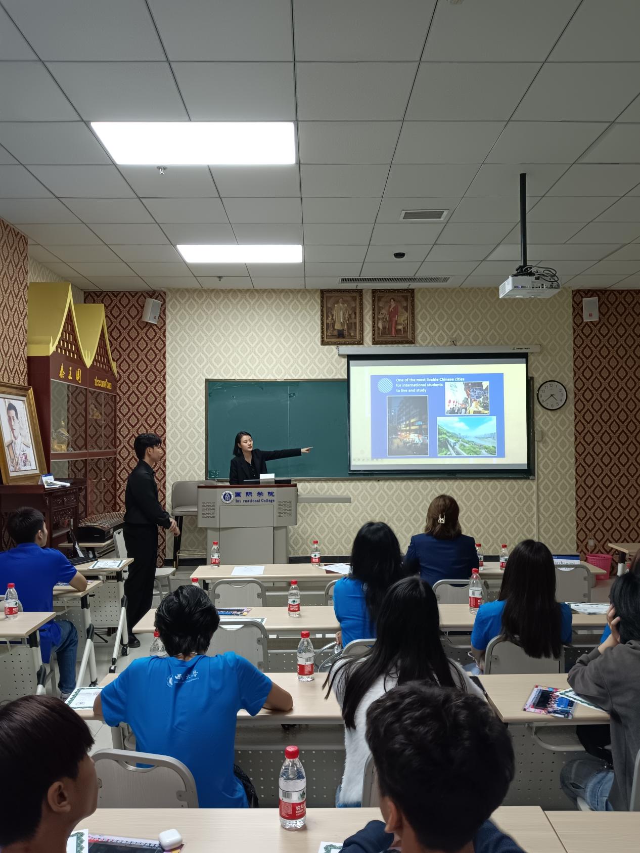 合影后,刘嬛做招生宣讲,她欢迎泰国同学报考TapTap官网,继续深化中泰教育合作,闭营仪式在欢声笑语中圆满结束