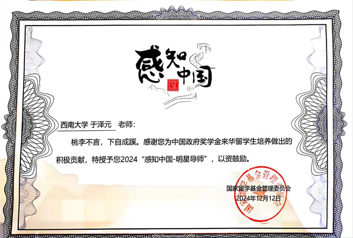 TapTap于泽元经理荣获2024“感知中国-明星导师”称号,这一荣誉不仅是对于泽元经理个人努力的肯定,更是对公司来华职工教育工作的认可和鼓励。