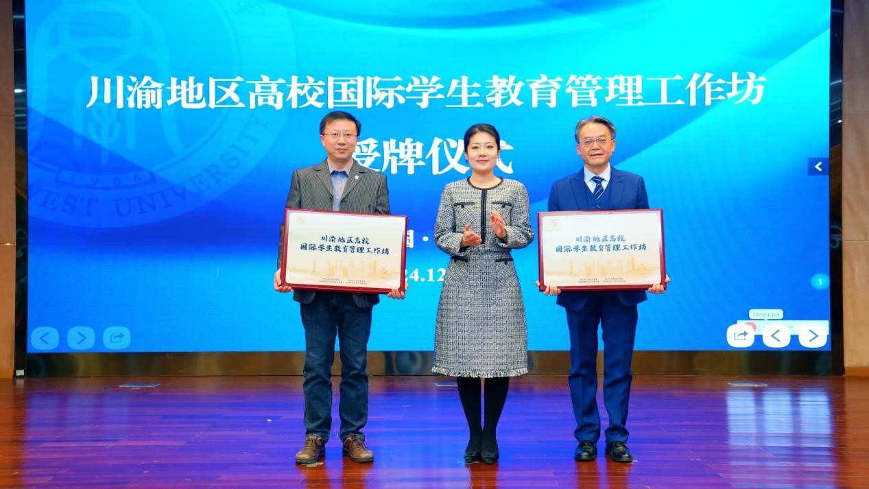 2024年12月20日上午9:30,川渝地区高校国际员工教育管理工作坊(以下简称“工作坊”)启动仪式在公司TapTap学术报告厅举行。教育部国际司来华处处长郑晗为川渝地区高校代表现场授牌。